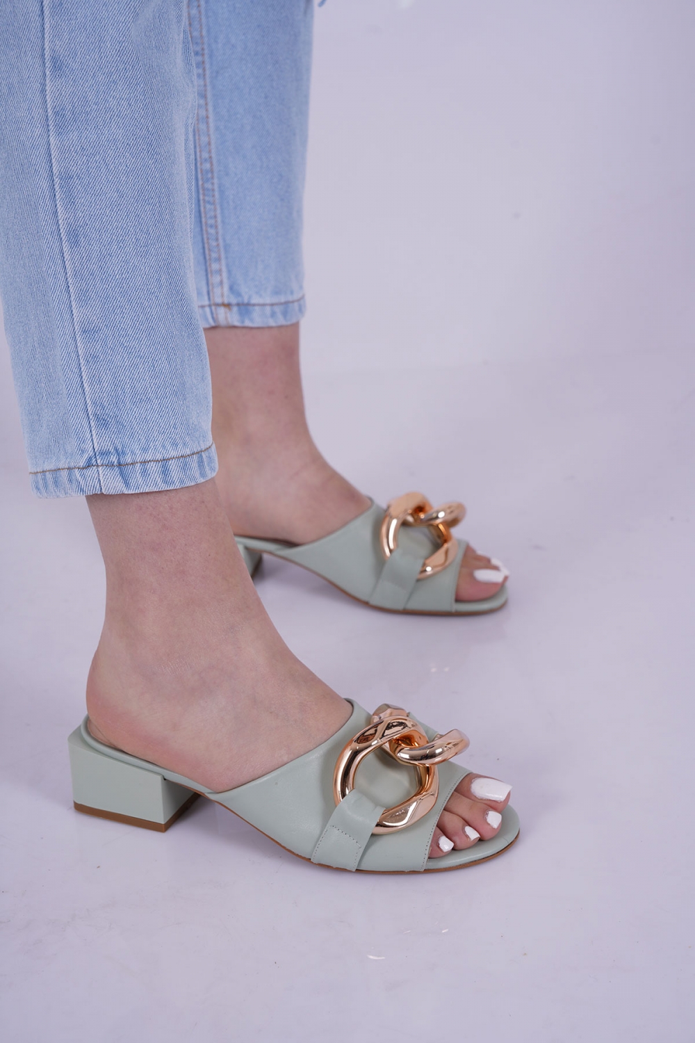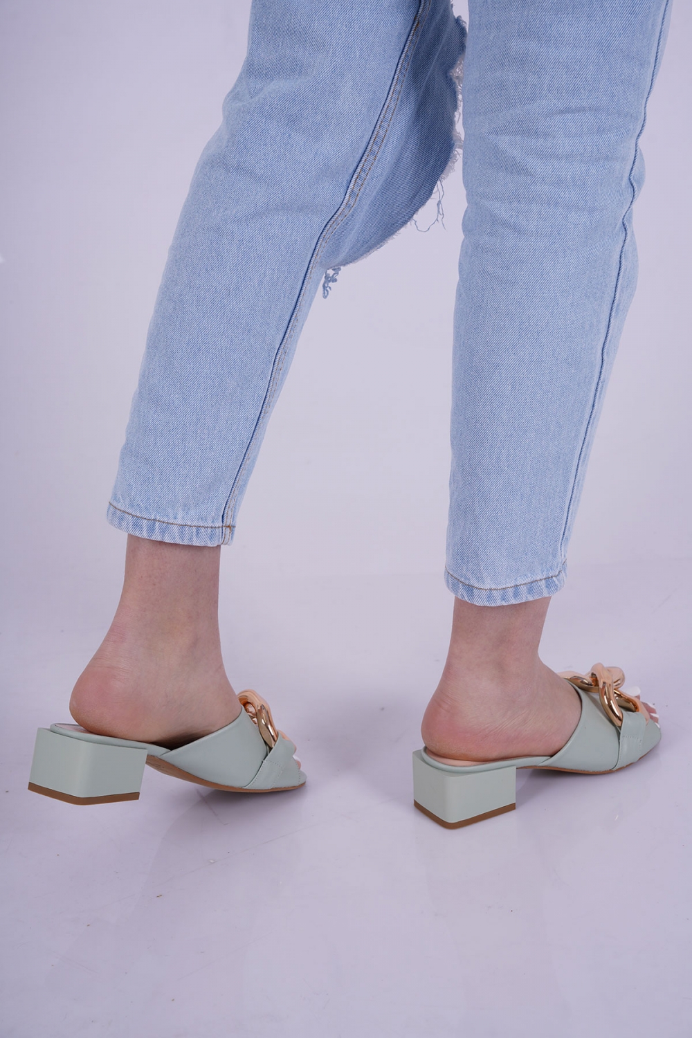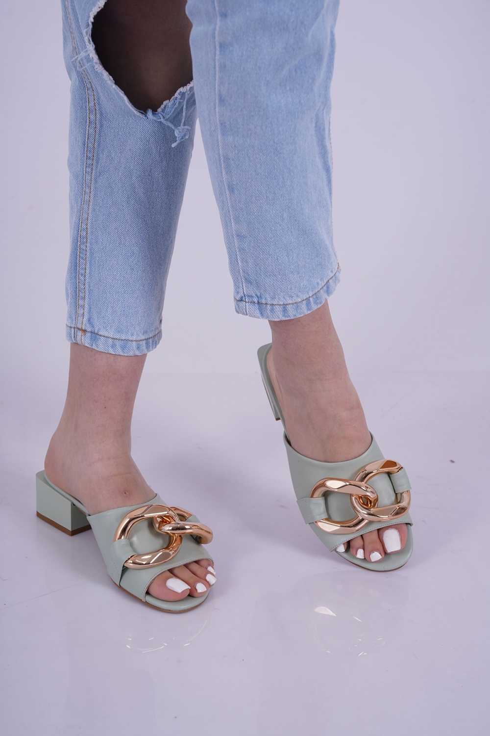 Hakiki Deri Mint Kadın Topuklu Terlik 211127614