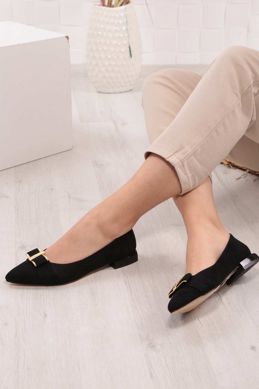 Hakiki Deri Siyah Süet Kadın Babet Ayakkabı 211127105