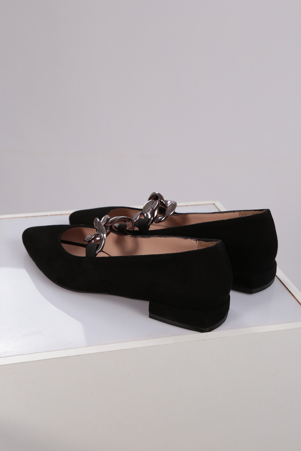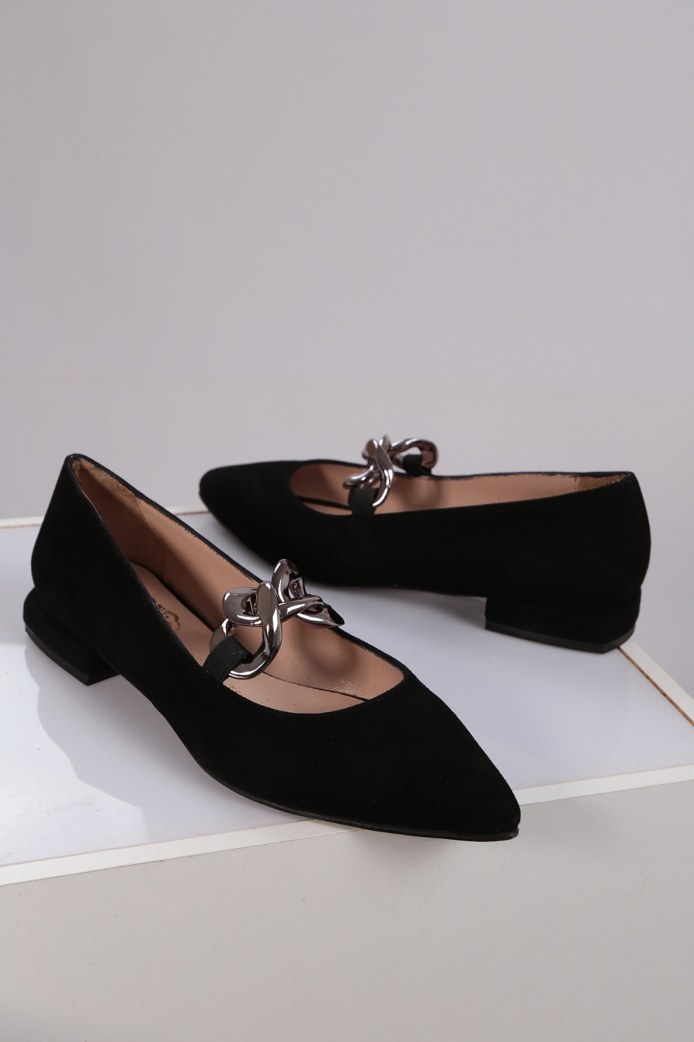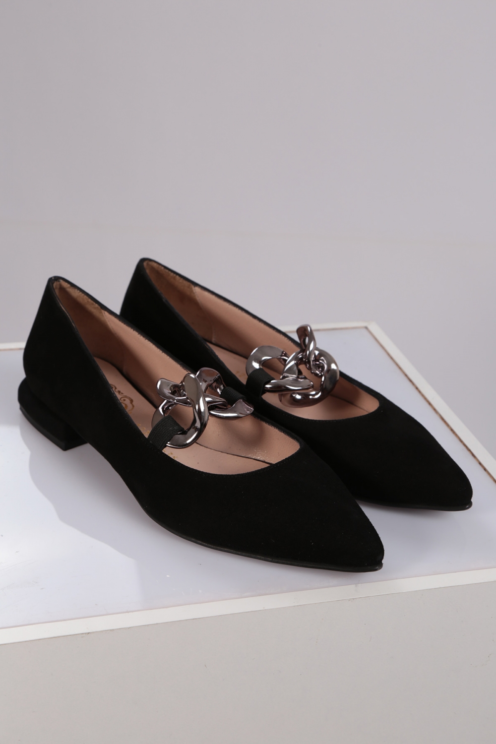 Hakiki Deri Siyah Süet Kadın Babet Ayakkabı 211127106