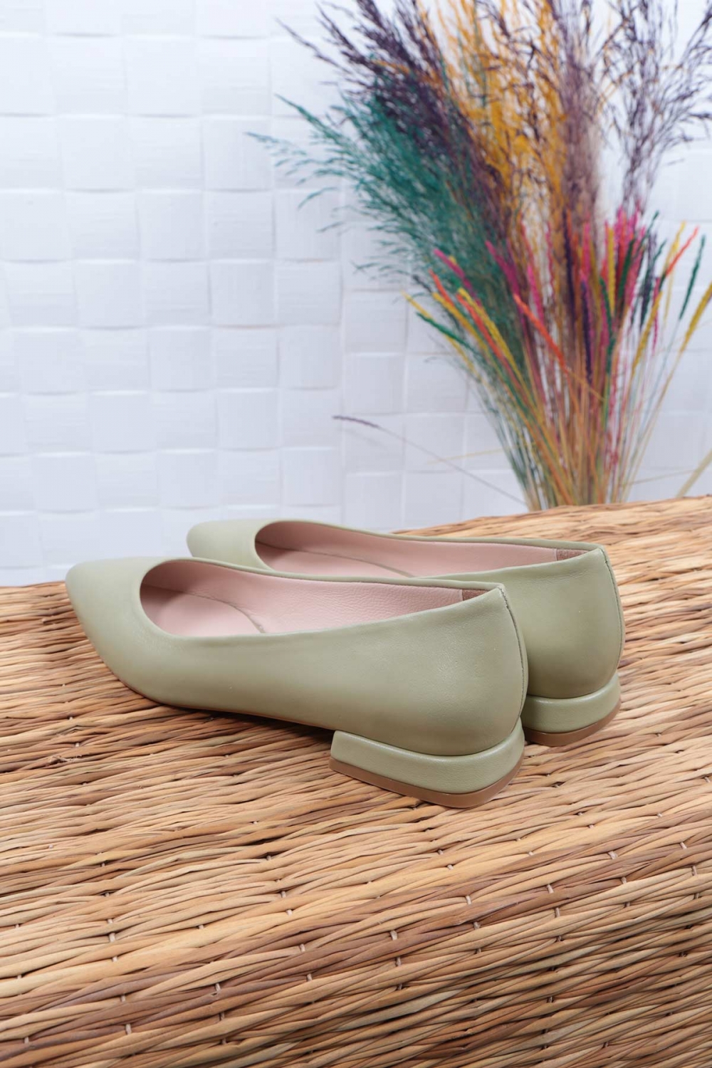 Hakiki Deri Yeşil Kadın Babet Ayakkabı 211127103