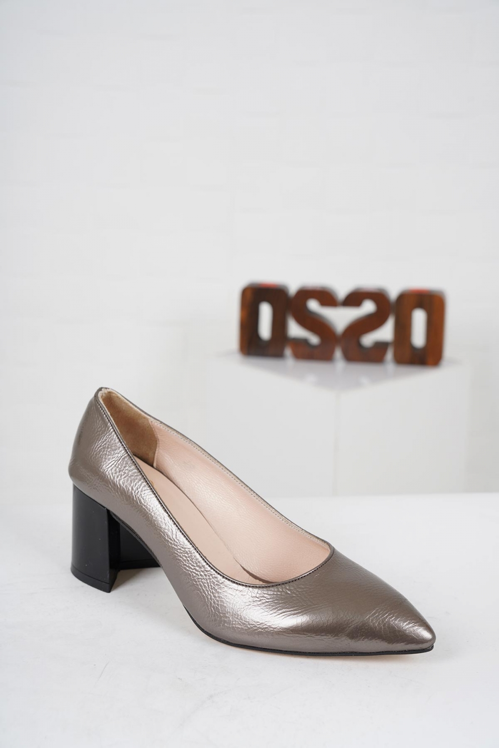Antik Bronz Sulu Rugan Kadın Topuklu Ayakkabı 221127122
