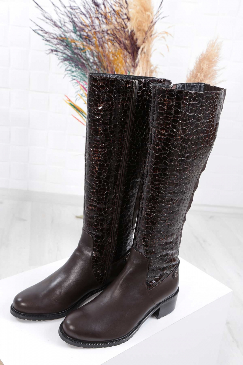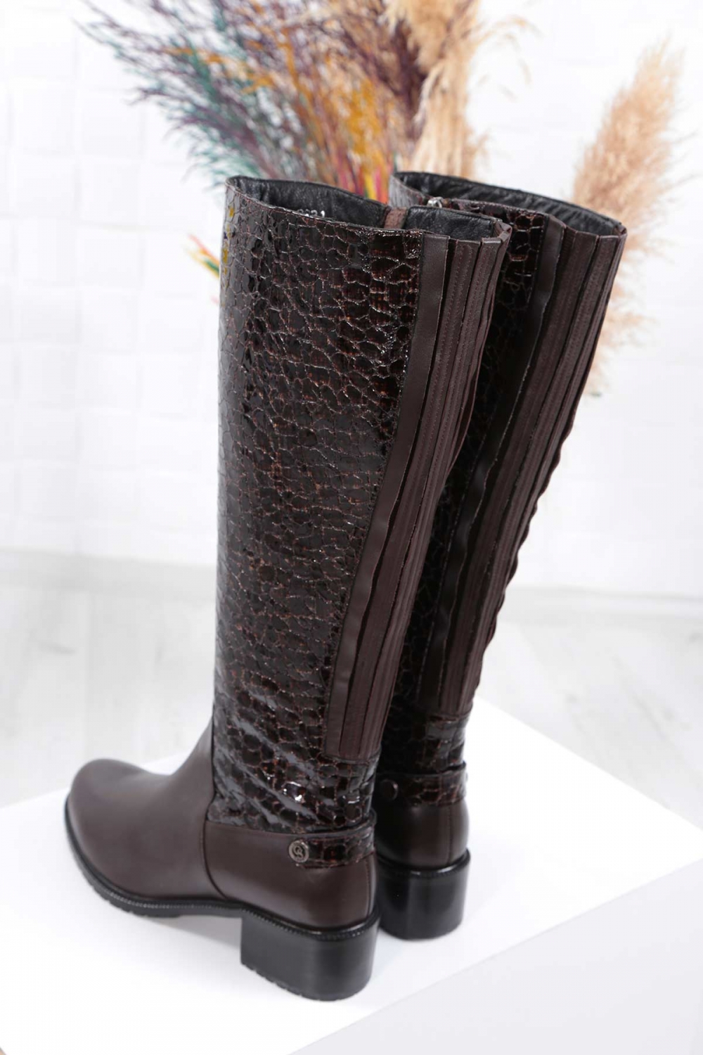 Hakiki Deri Kahve-Kahve Kroko Rugan Kadın Arka Lastiklı Çizme 202110313