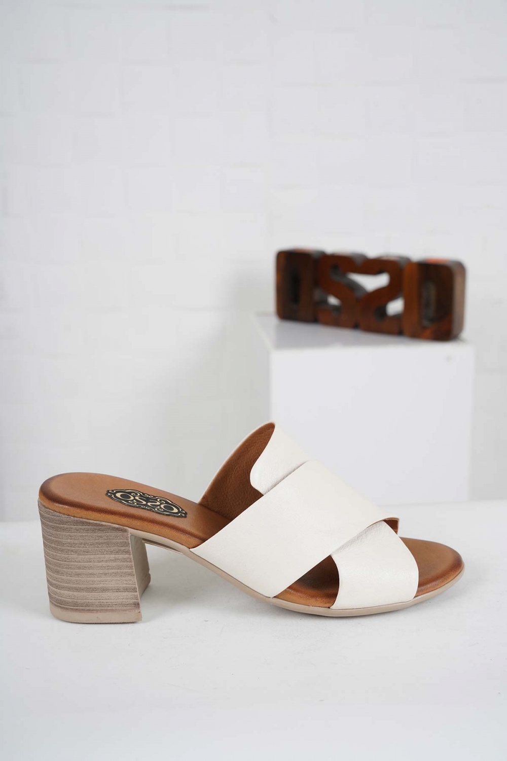 Hakiki Deri Açık Bej Kadın Topuklu Terlik 241126604