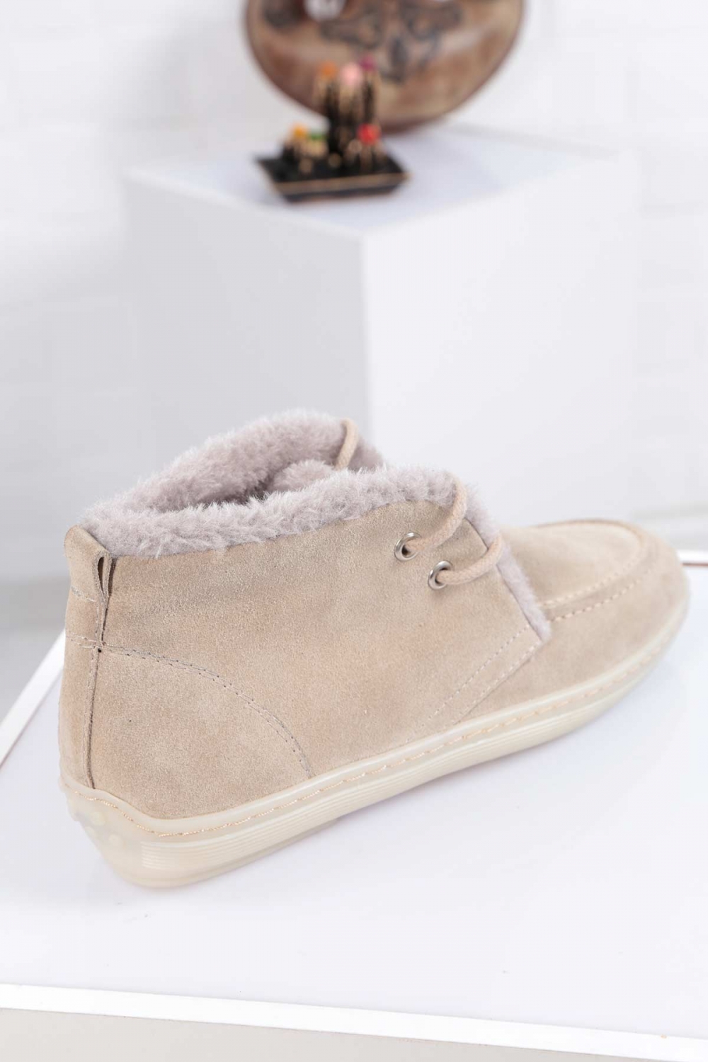 Hakiki Deri Açık Bej Süet Kadın Kısa Bot 212209201