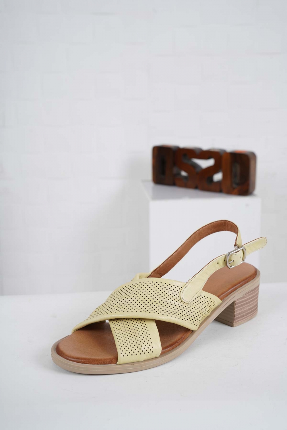 Hakiki Deri Açık Sarı Kadın Topuklu Sandalet 241126506