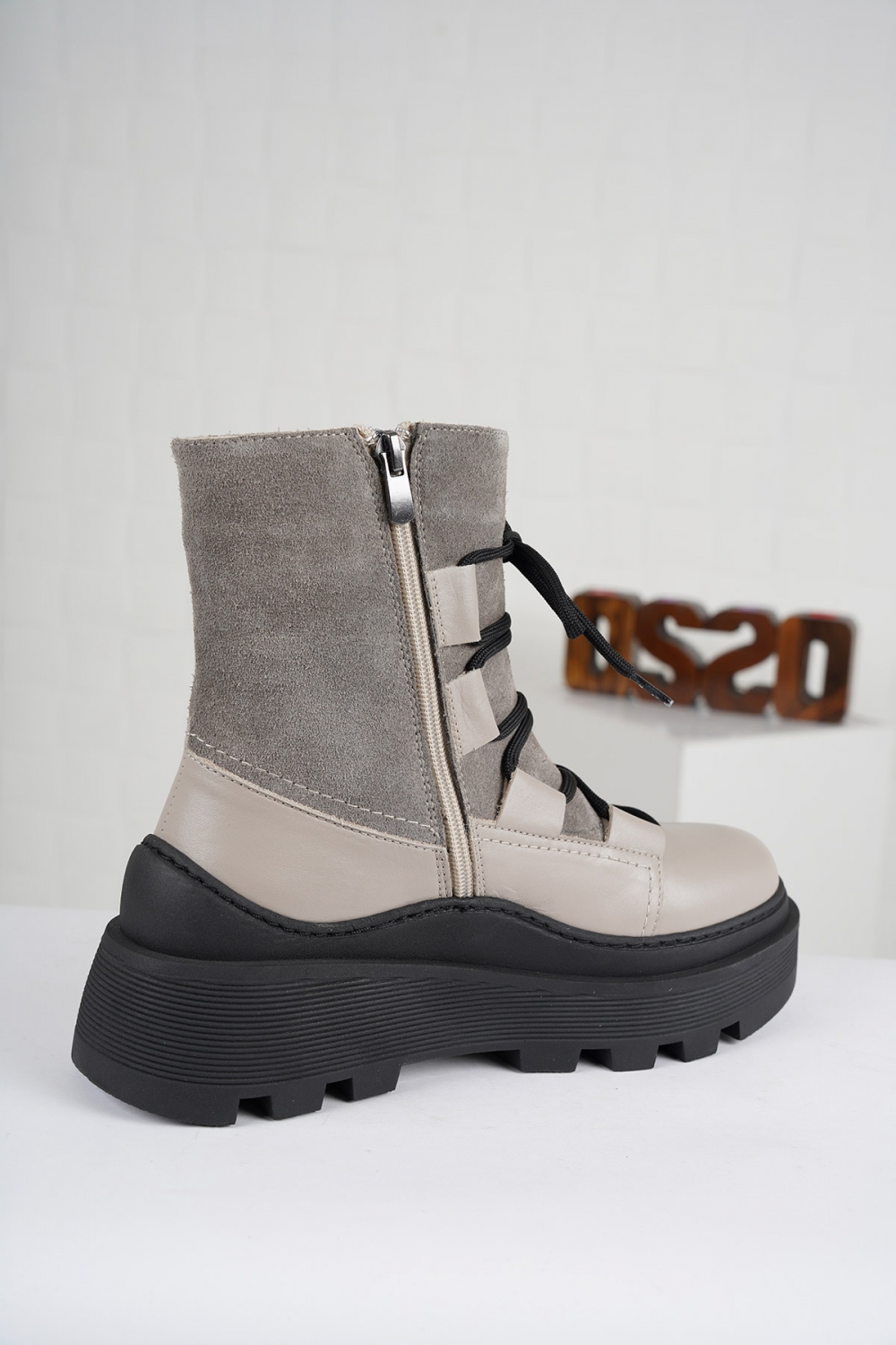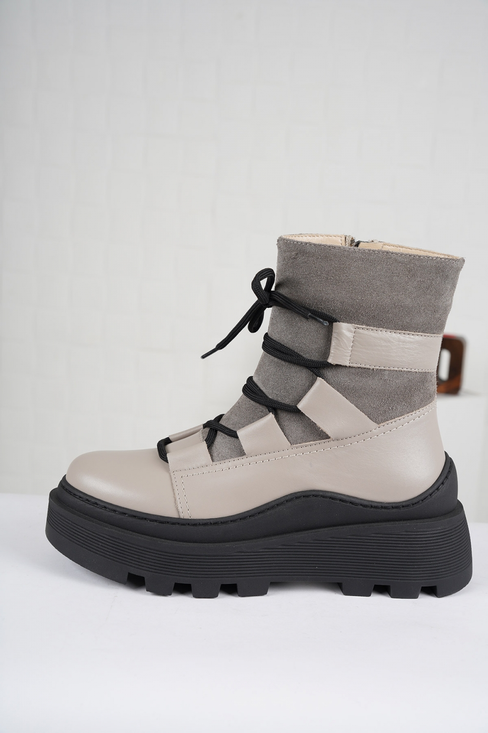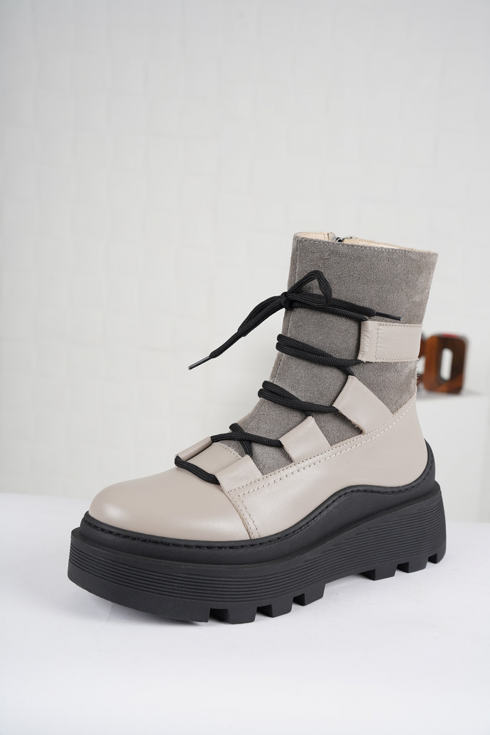Hakiki Deri Açık Vizon-Gri Süet Kadın Postal Bot 222136202