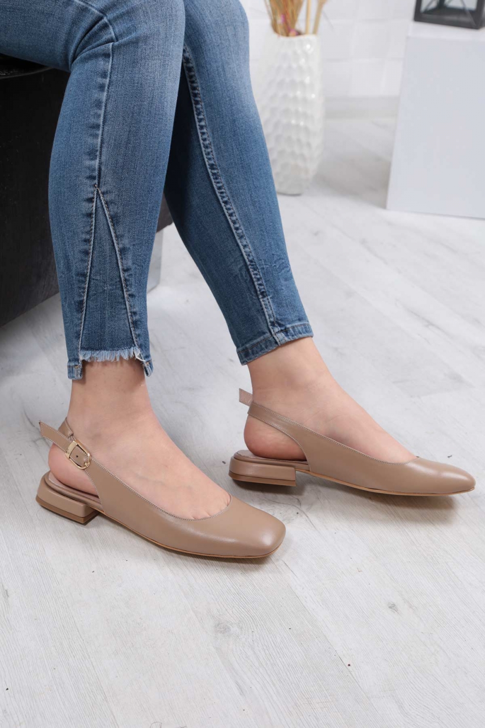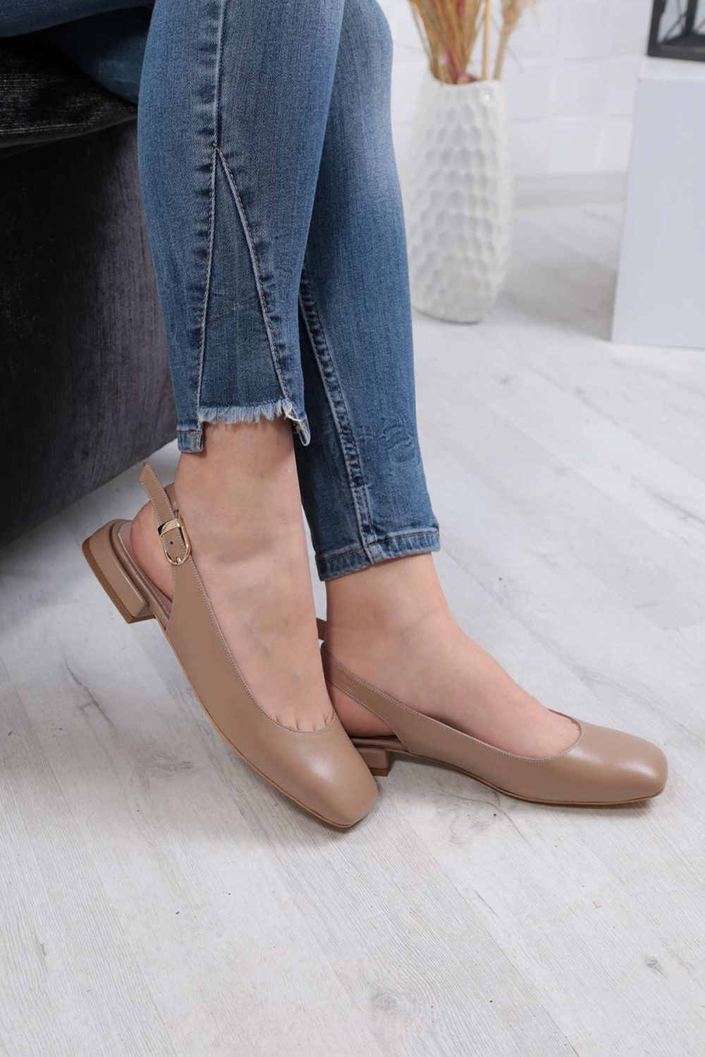 Hakiki Deri Açık Vizon Kadın Burun Kapalı Sandalet 211127529