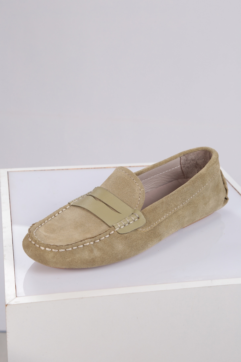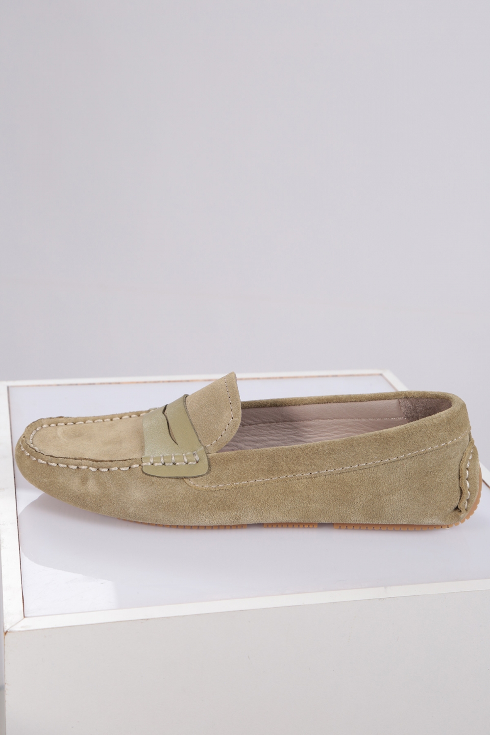 Hakiki Deri Açık Yeşil Süet-Yeşil Deri Kadın Makosen Ayakkabı 221209106