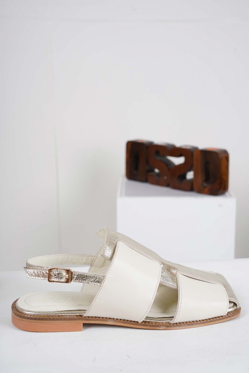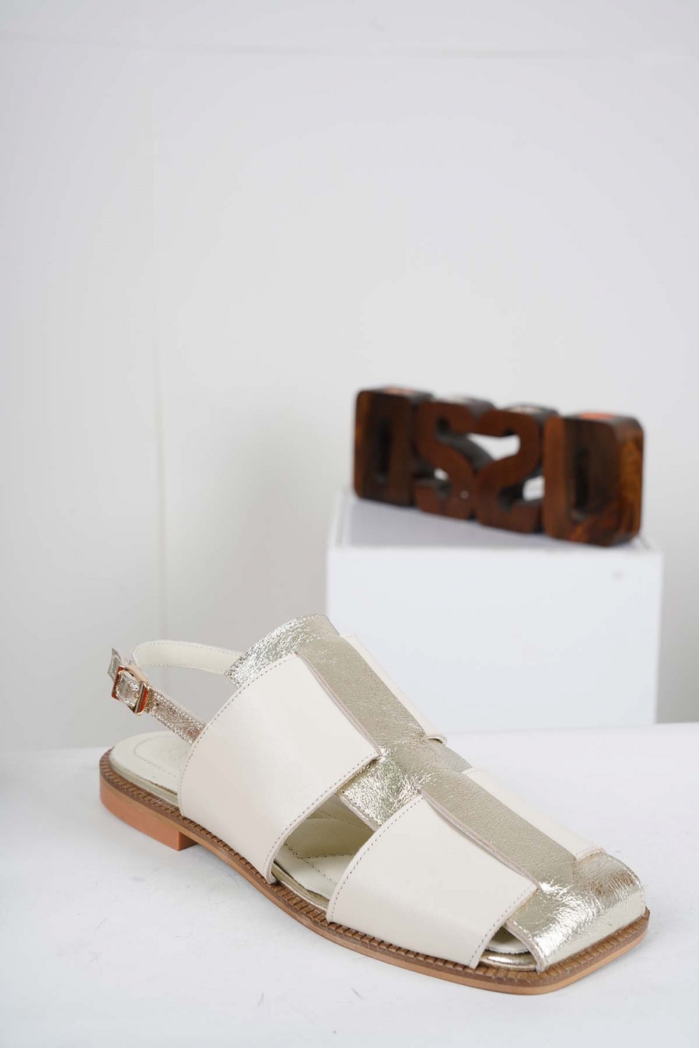 Hakiki Deri Altın-Bej Kadın Burun Kapalı Sandalet 241127509
