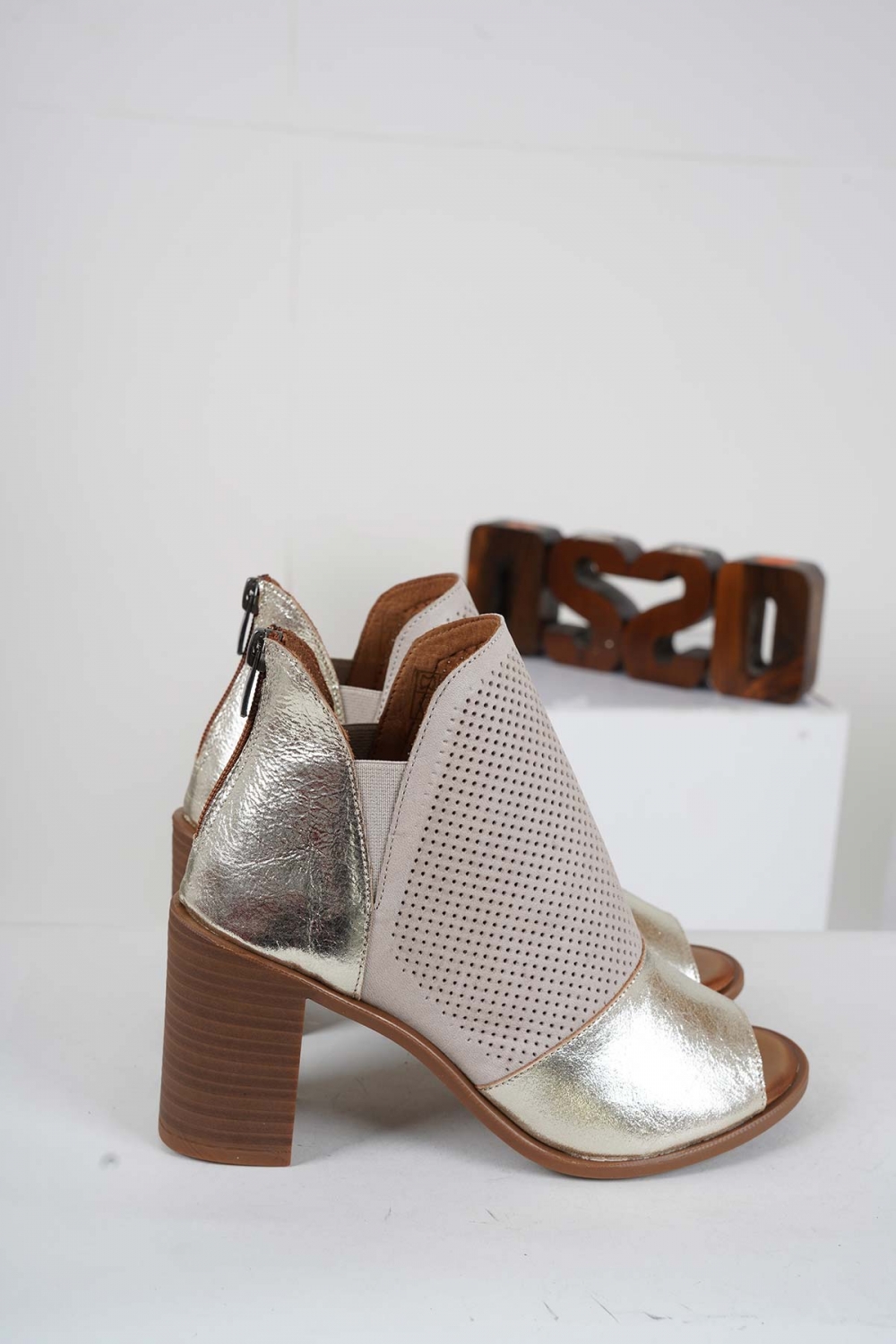 Hakiki Deri Altın-Gümüş Kadın Yüksek Topuklu Sandalet 241126523