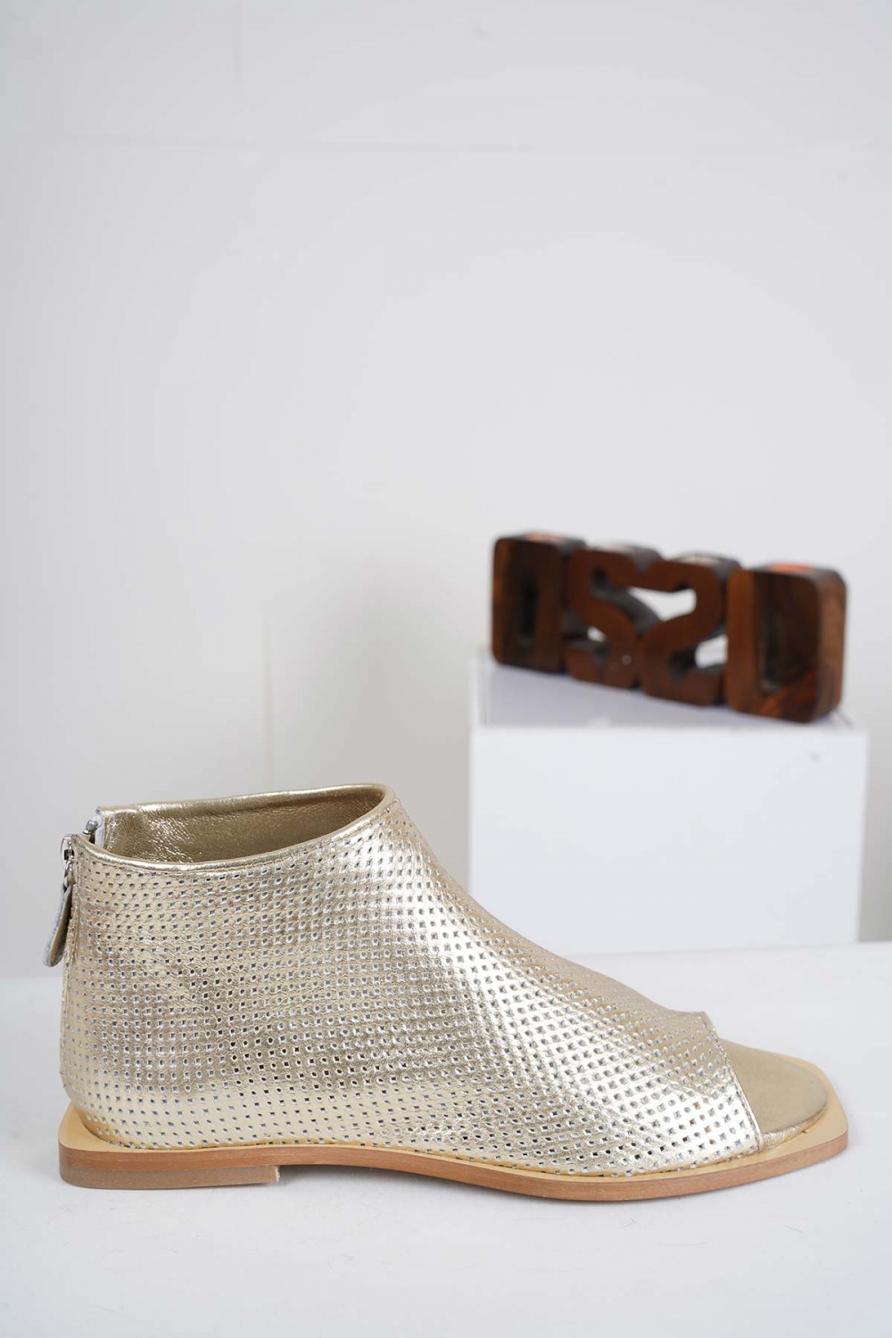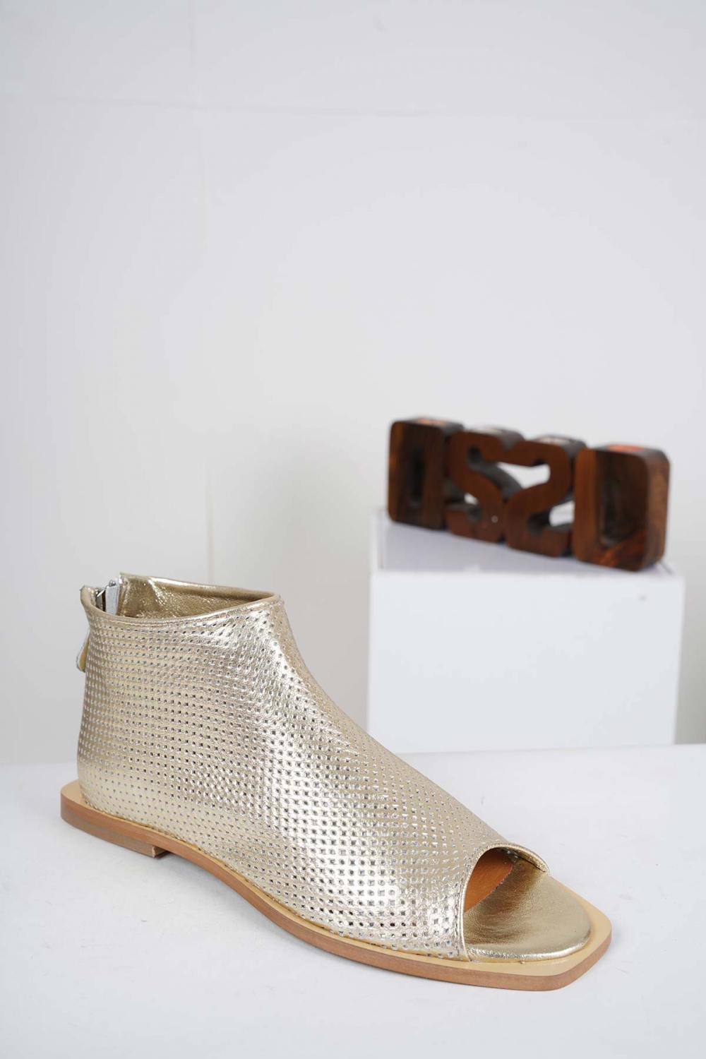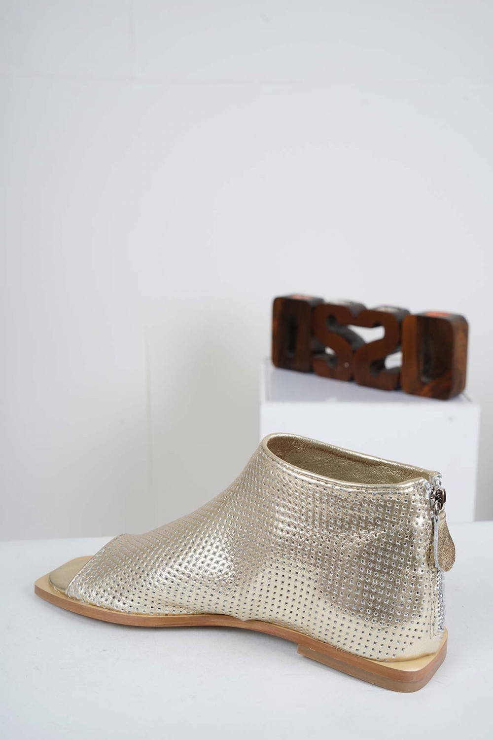Hakiki Deri Altın Kadın Burnu Açık Bot 221110201