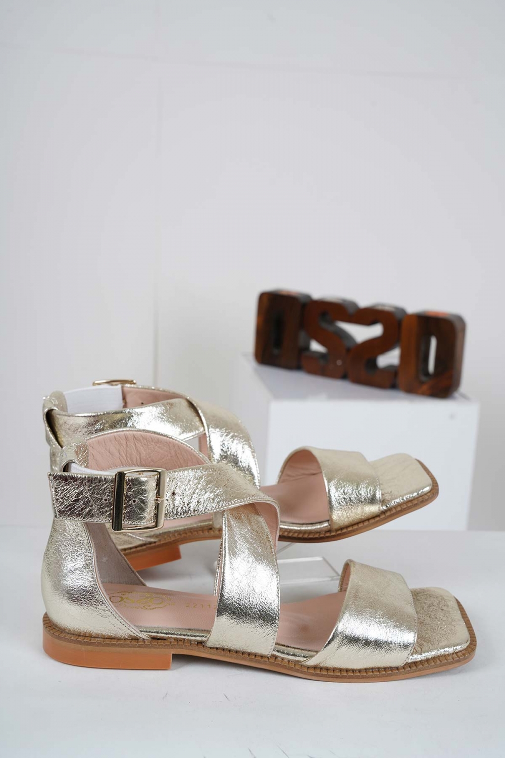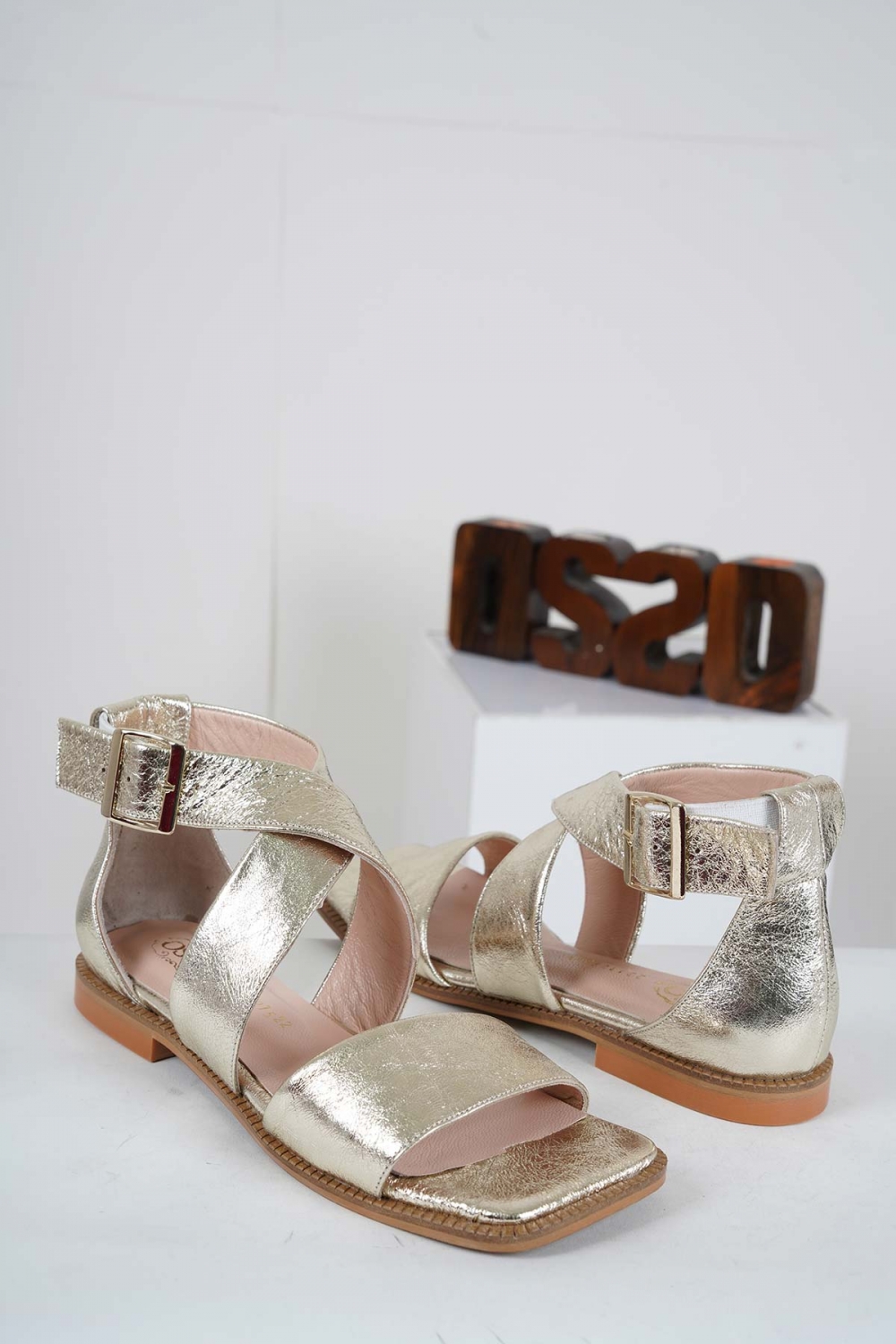 Hakiki Deri Altın Kadın Burun Kapalı Sandalet 221127522