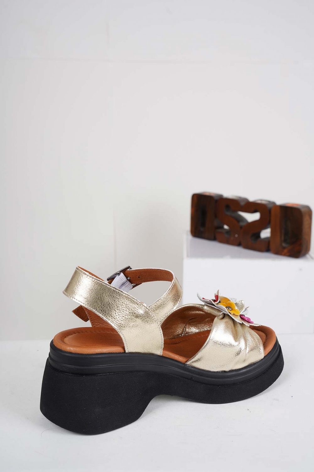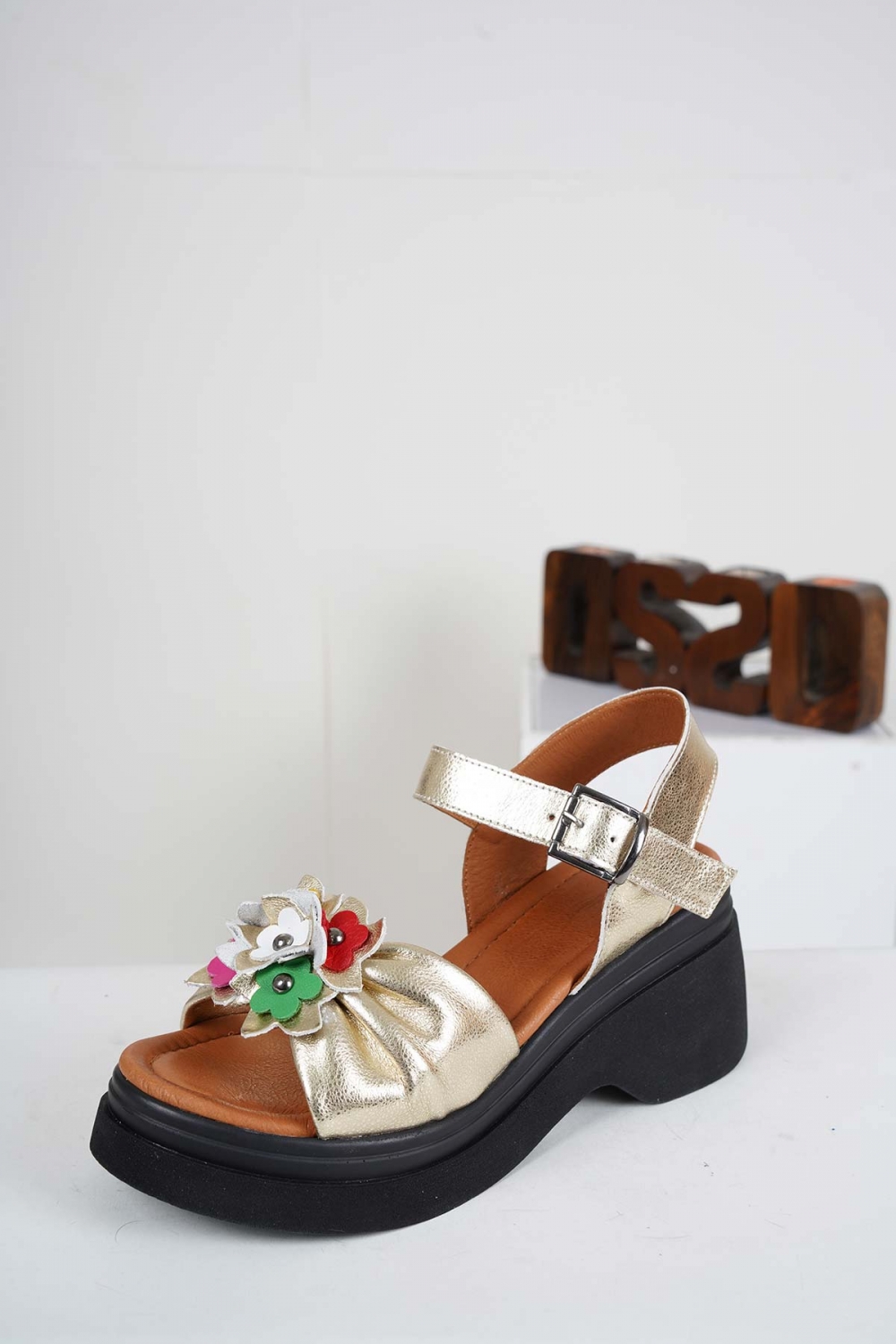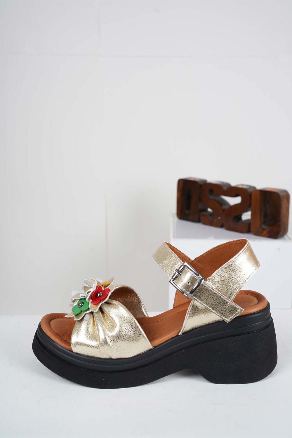 Hakiki Deri Altın Kadın Dolgu Topuklu Sandalet 241186503