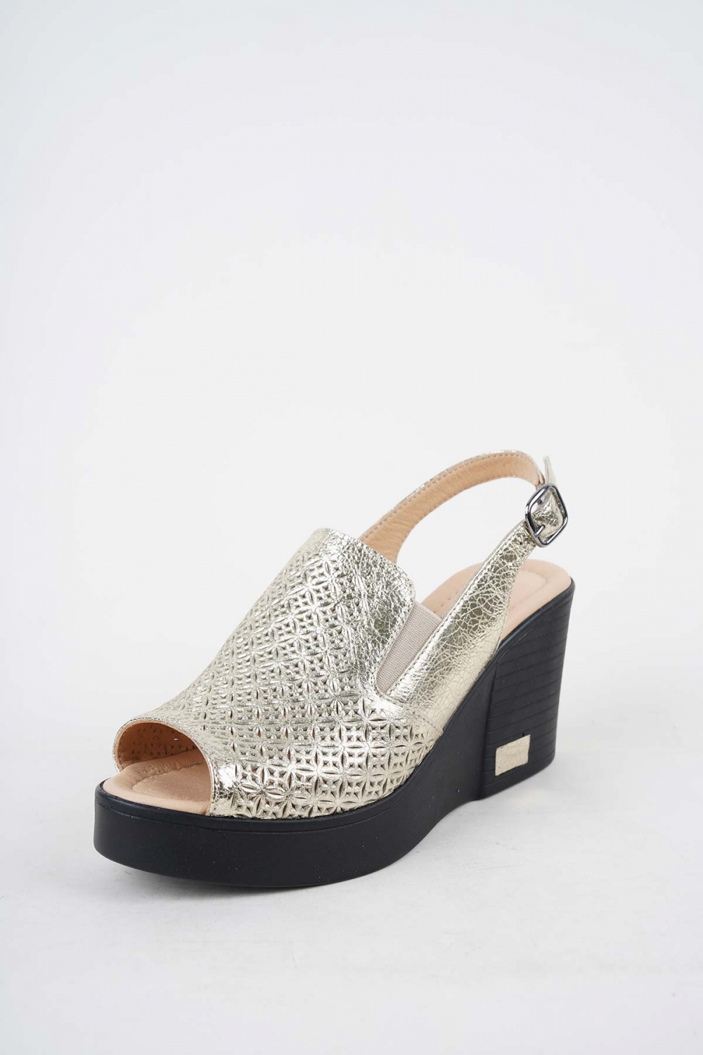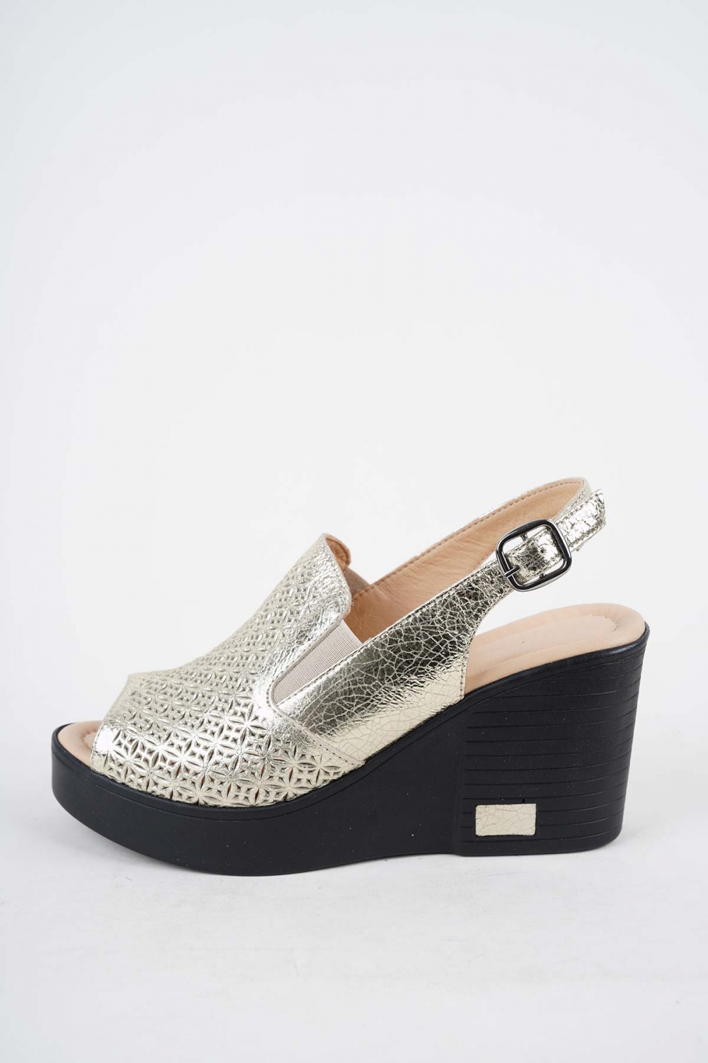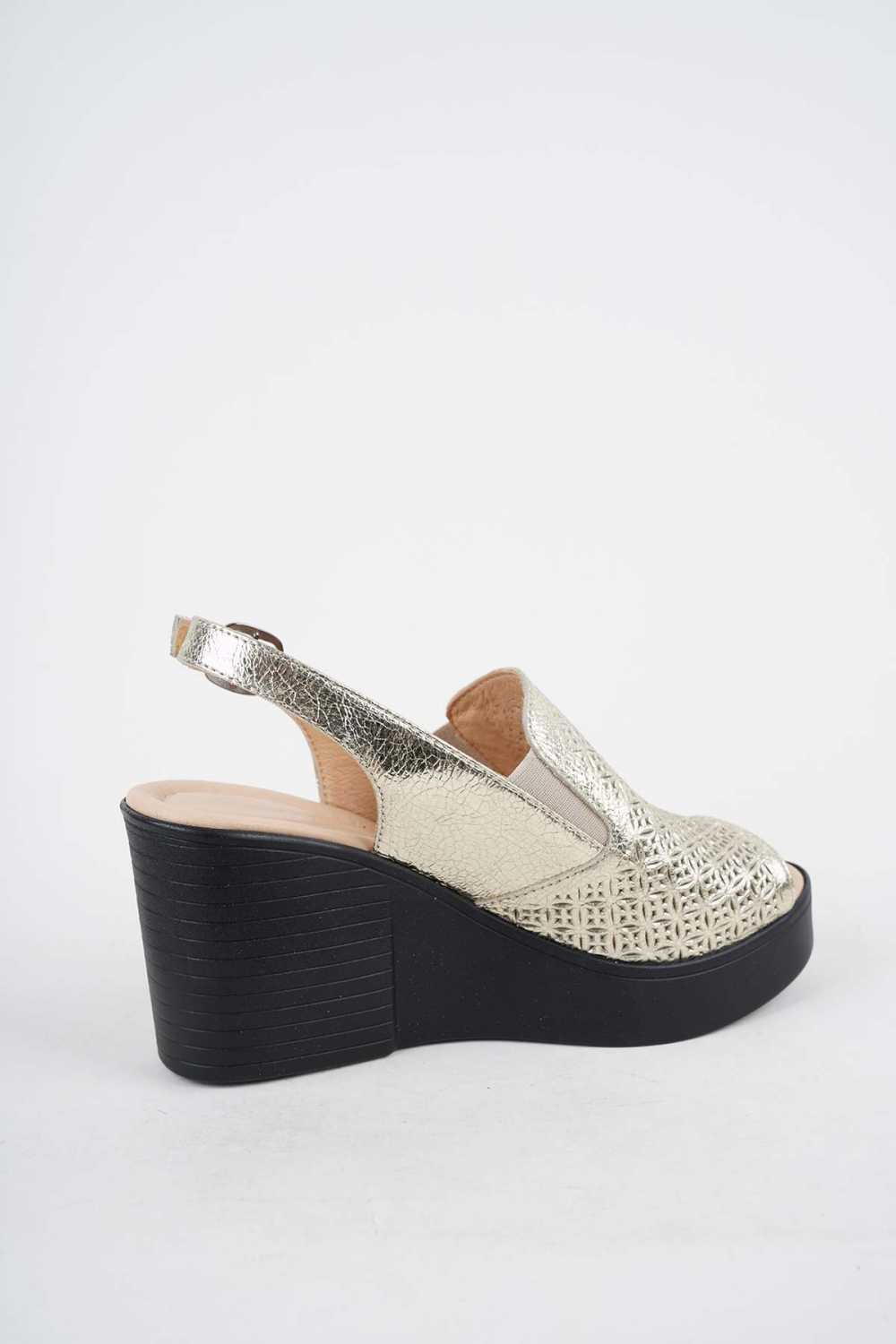 Hakiki Deri Altın Kadın Dolgu Topuklu Sandalet 251189507