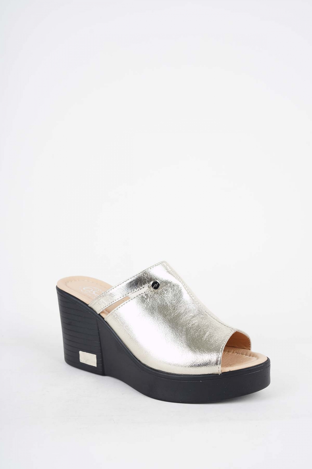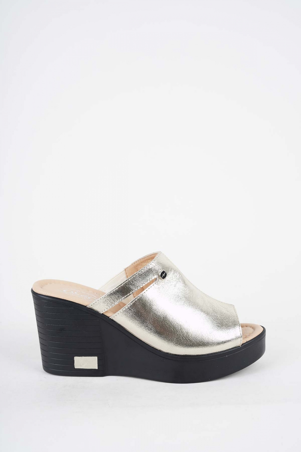 Hakiki Deri Altın Kadın Dolgu Topuklu Terlik 251189601
