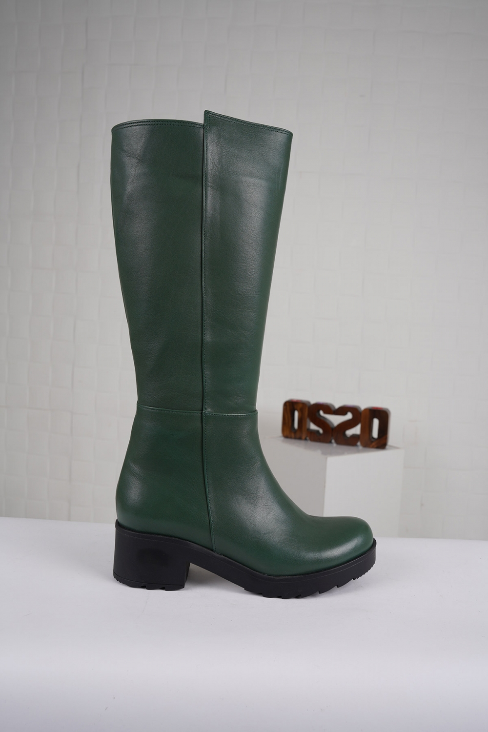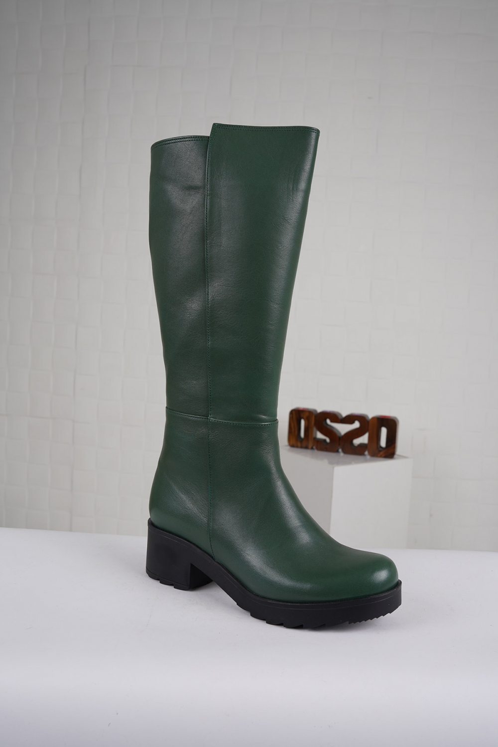Hakiki Deri Asker Yeşil Kadın Düz Çizme 222186302