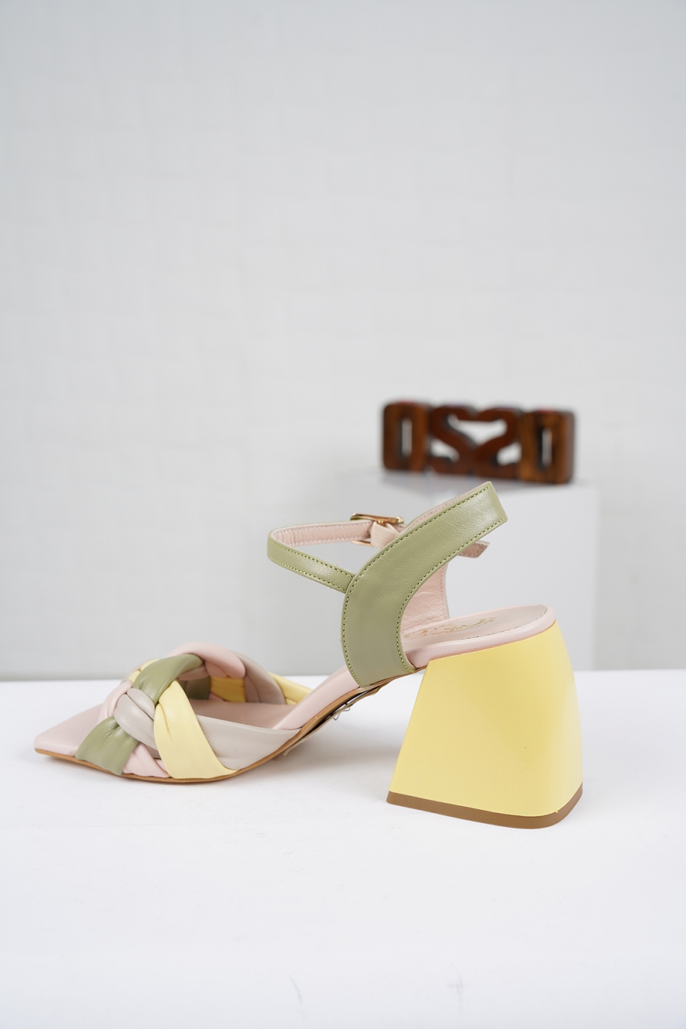 Hakiki Deri Avokado-Pudra-Bej-Sarı Kadın Topuklu Sandalet 221127514