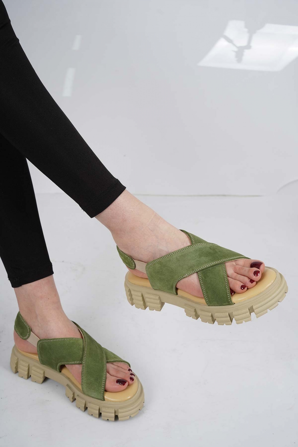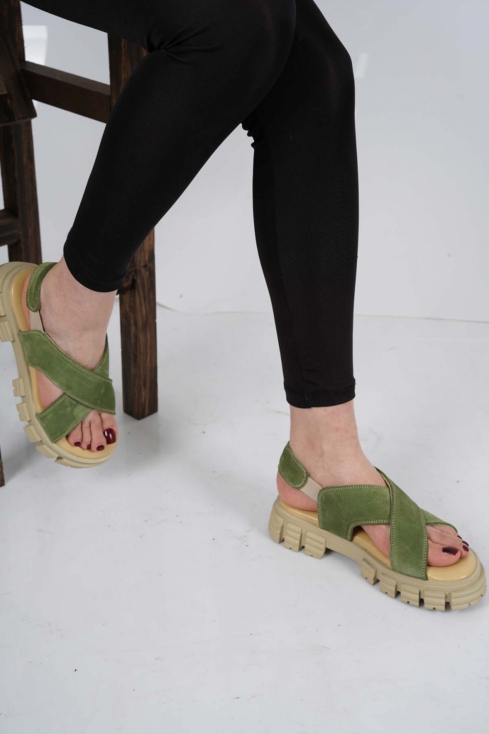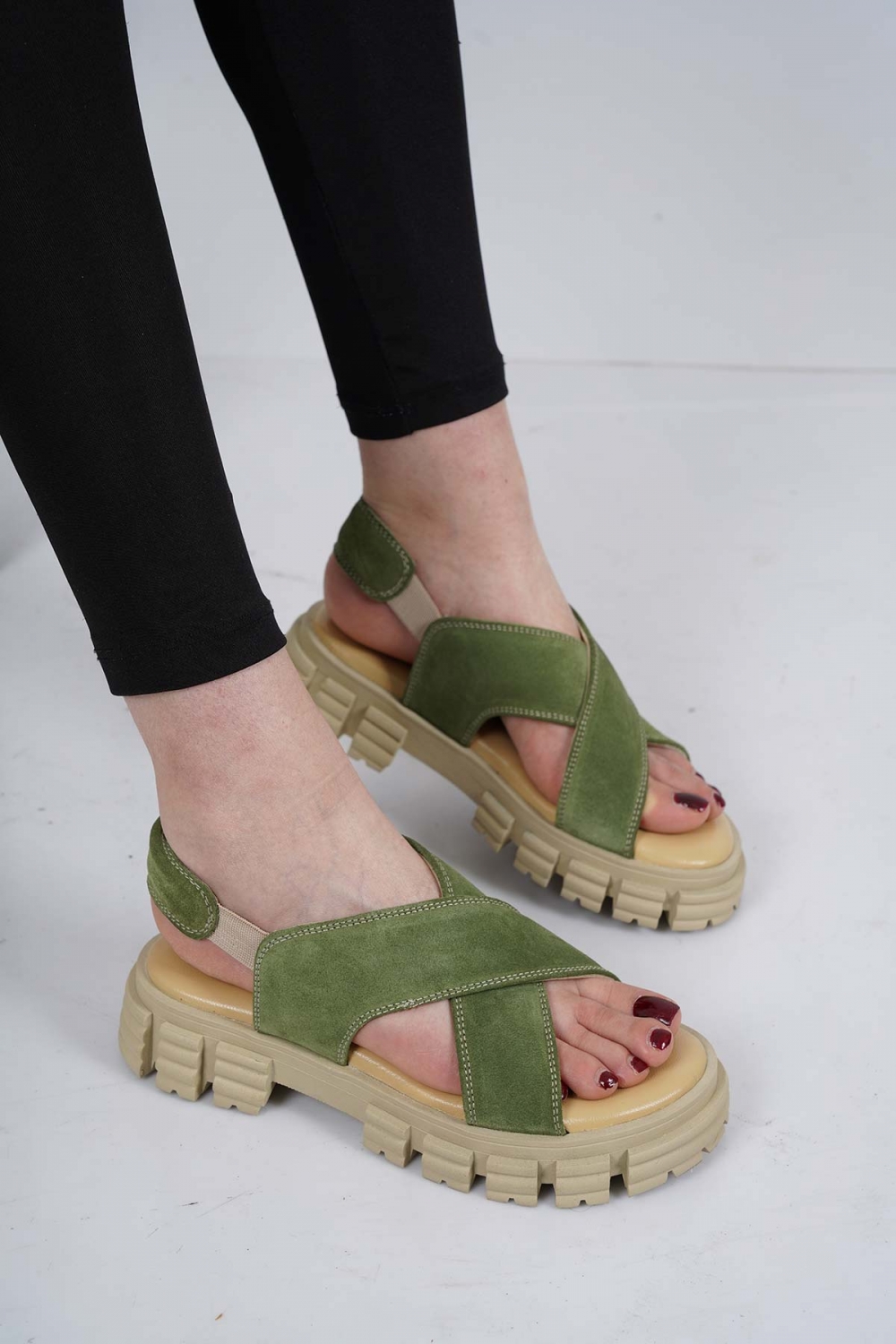 Hakiki Deri Avokado Süet Kadın Spor Sandalet 231135502
