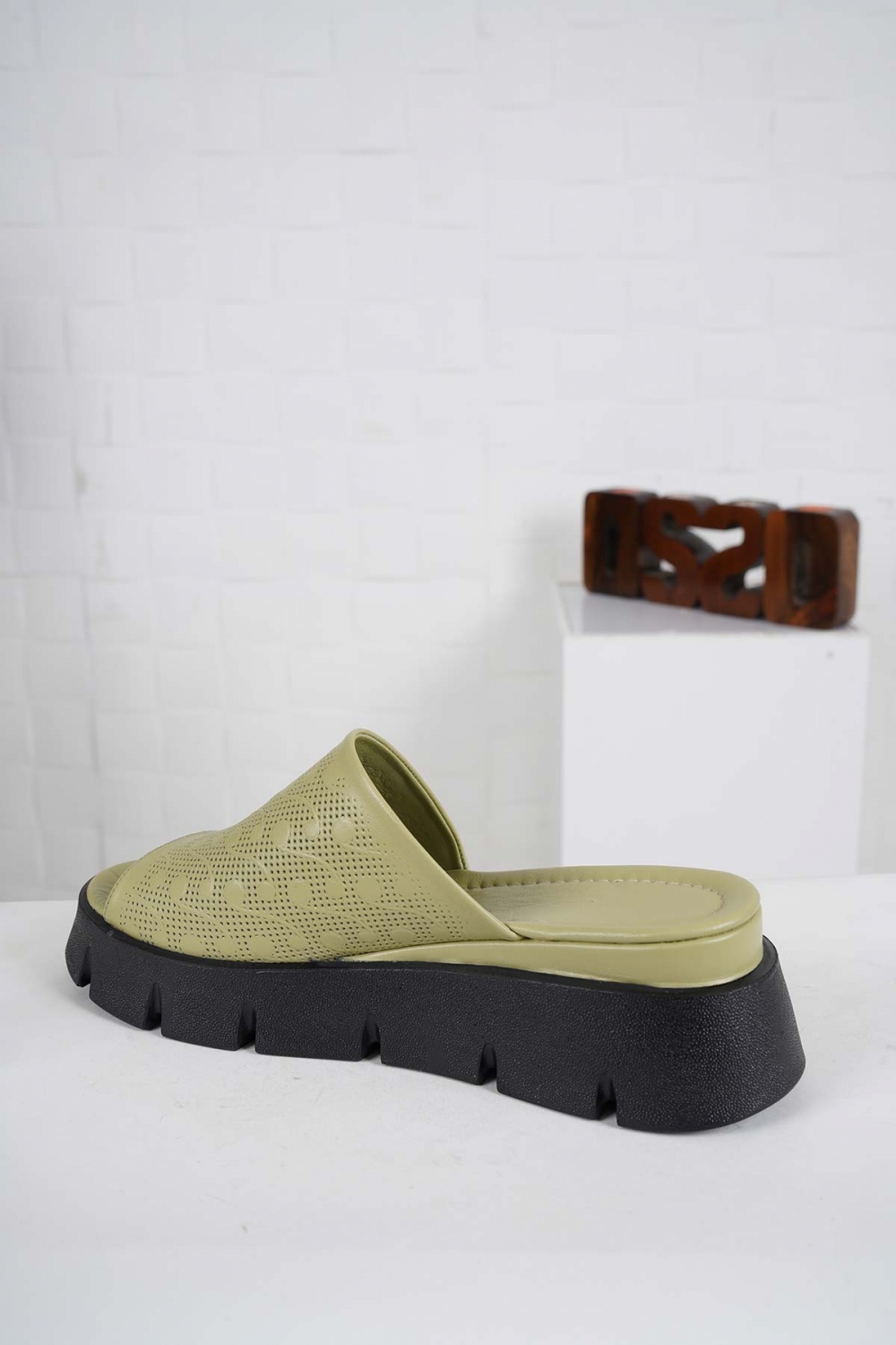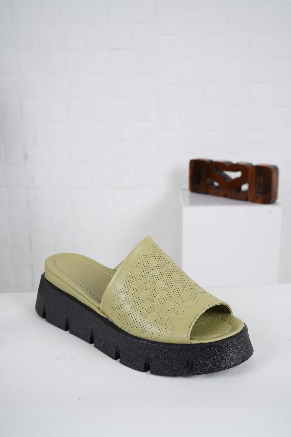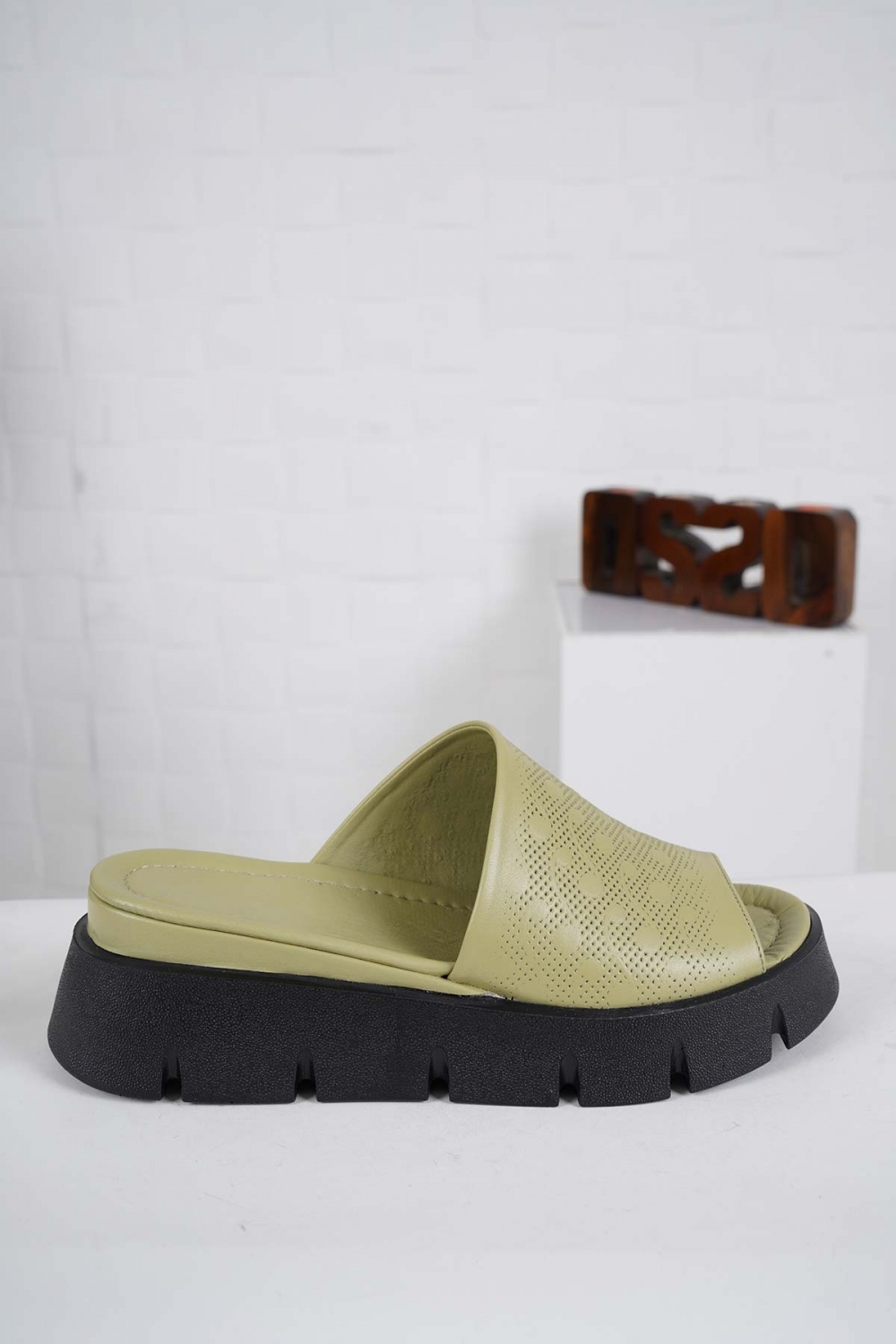 Hakiki Deri Avokado Yeşil Kadın Dolgu Topuk Terlik 241229610