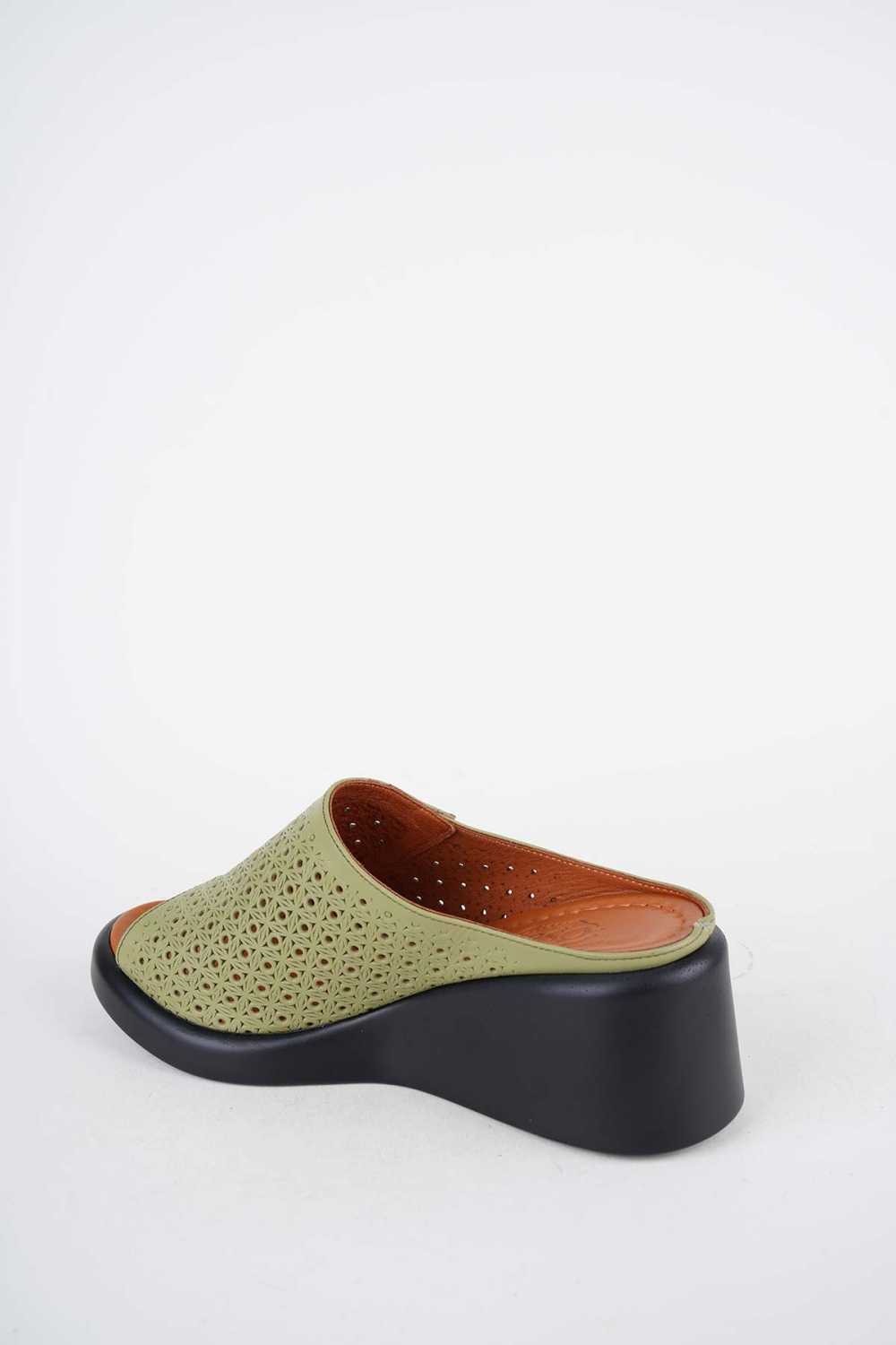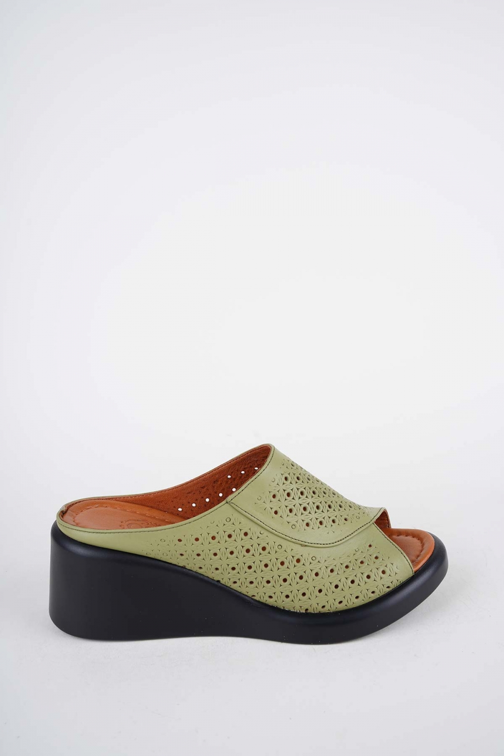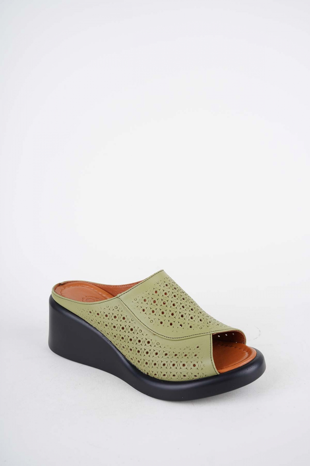 Hakiki Deri Avokado Yeşil Kadın Dolgu Topuklu Terlik 261229602