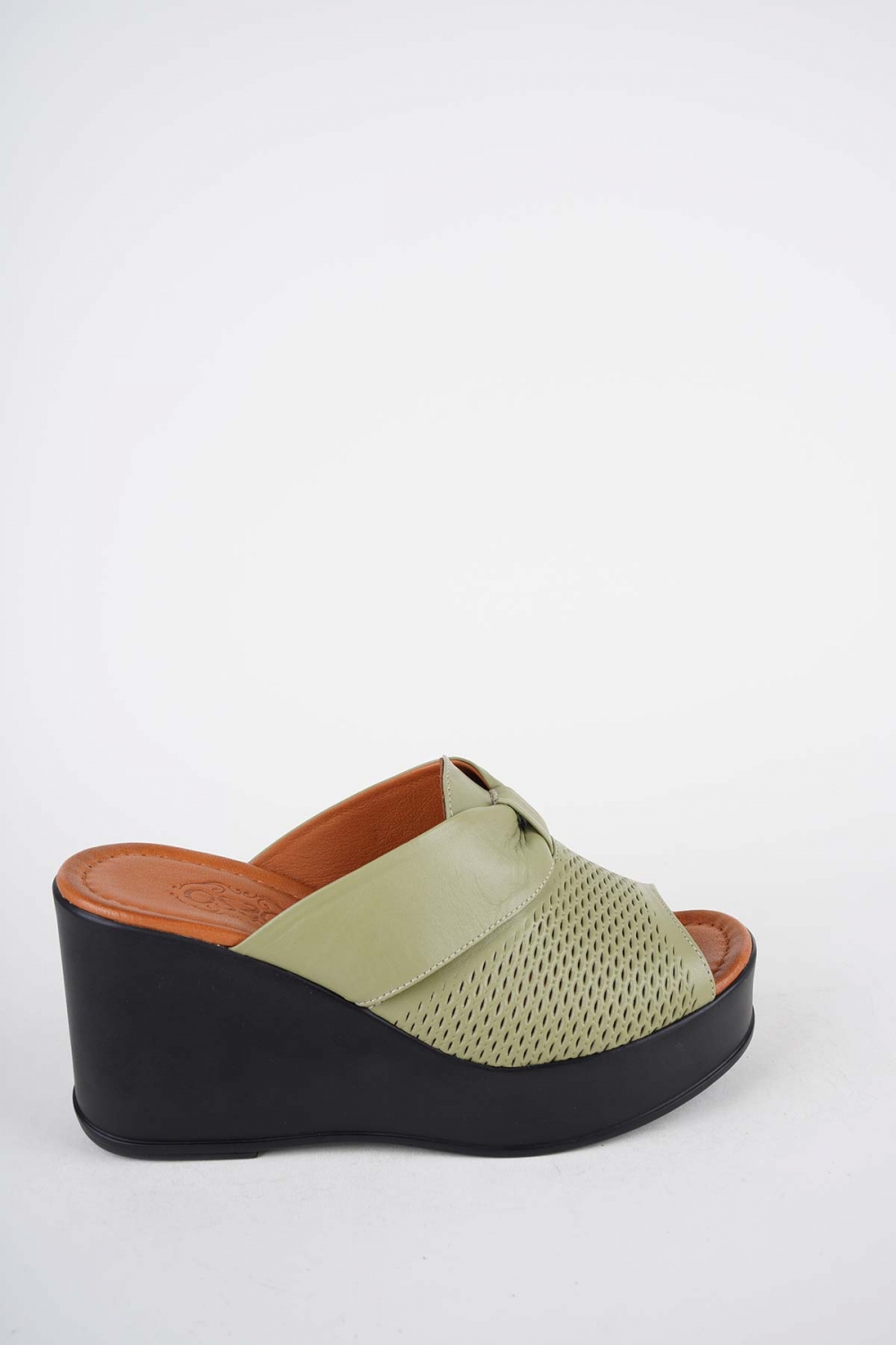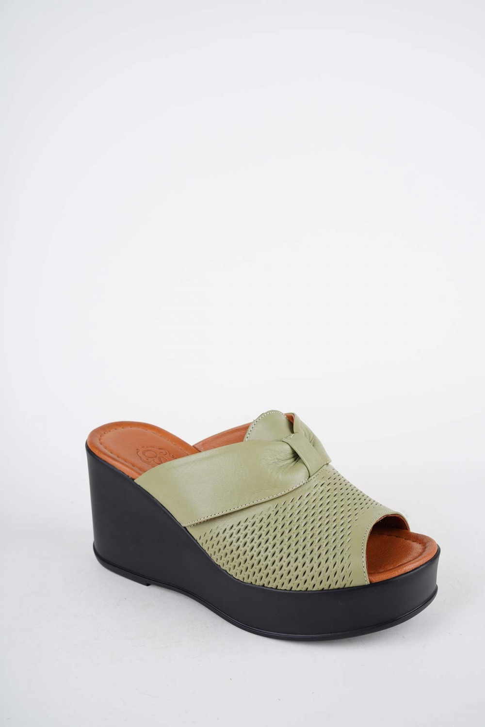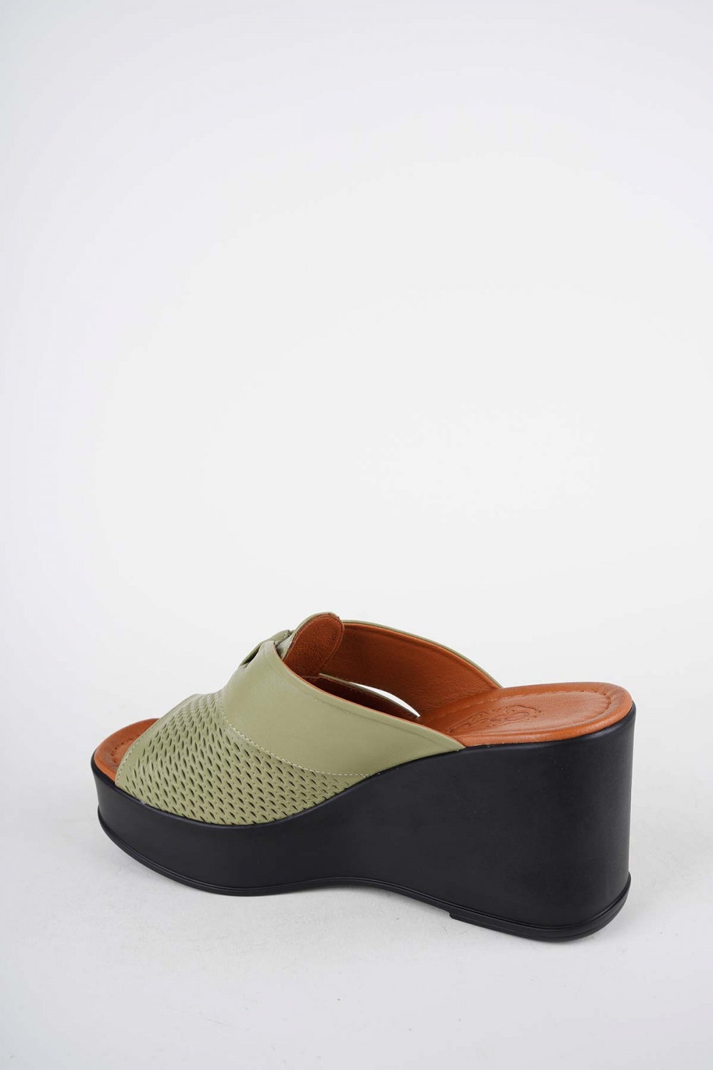 Hakiki Deri Avokado Yeşil Kadın Dolgu Topuklu Terlik 261229604