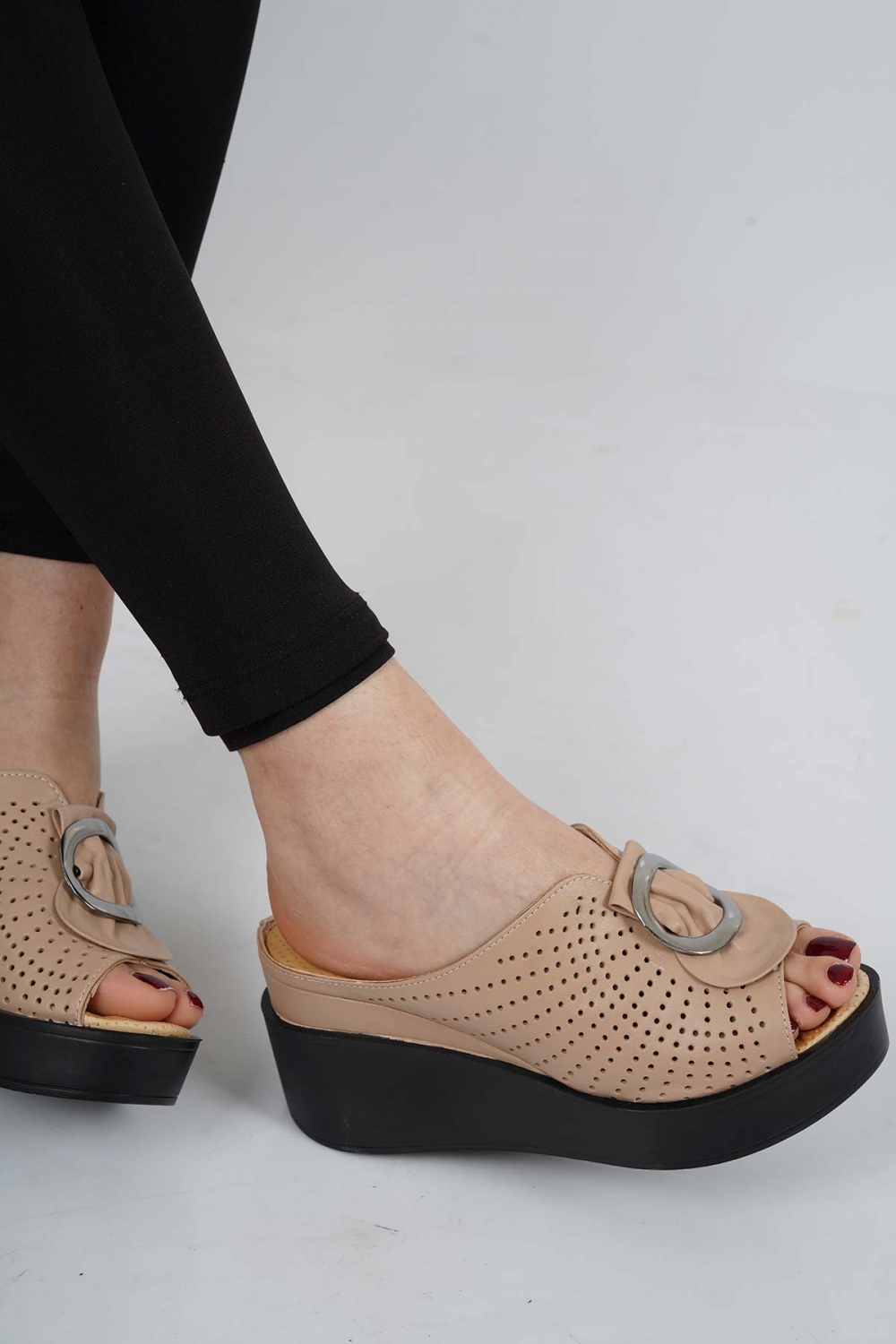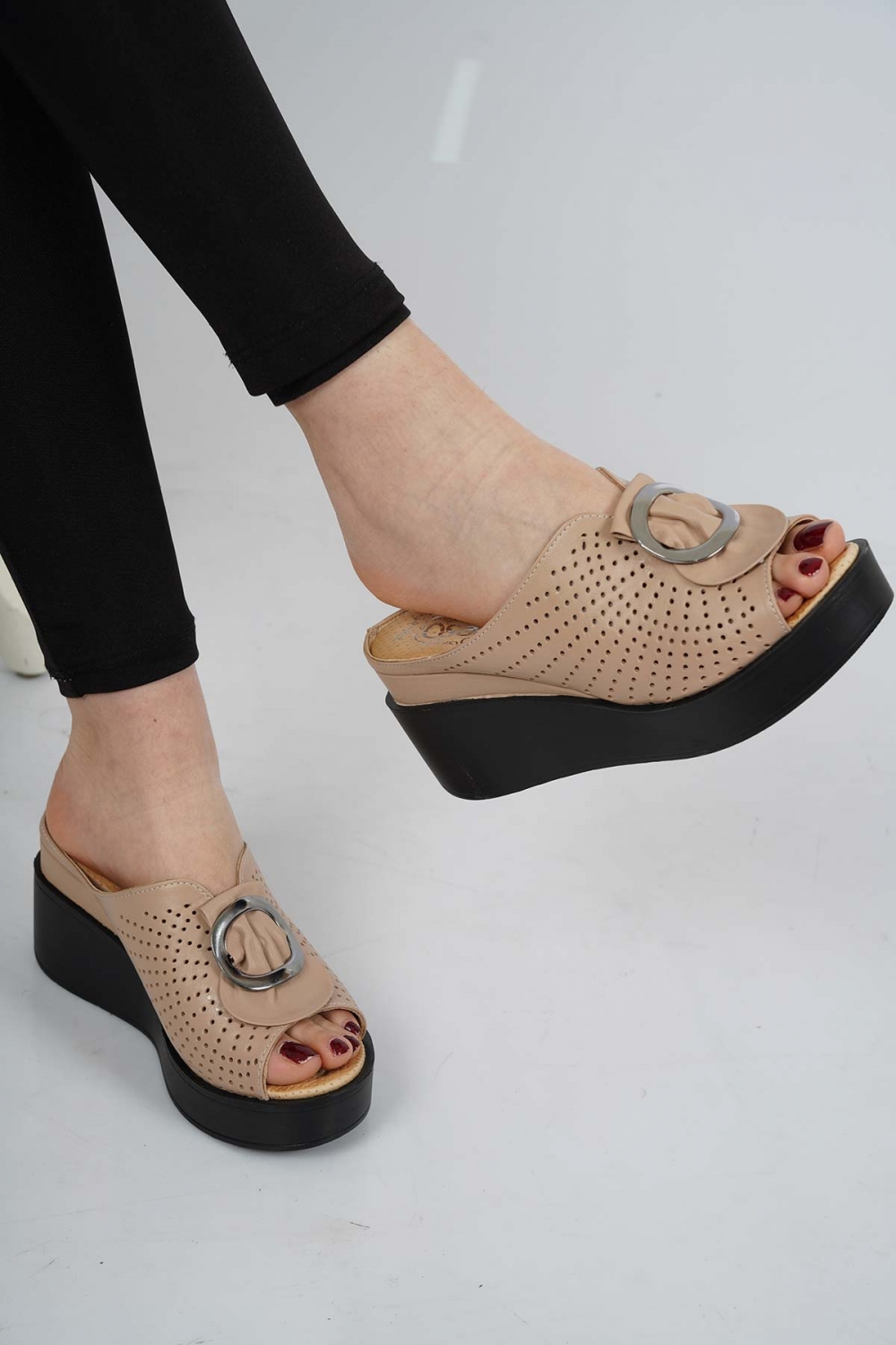 Hakiki Deri Pudra Kadın Dolgu Topuklu Terlik 261114602