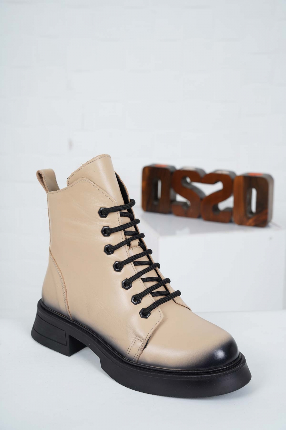 Hakiki Deri Badem Kadın Kısa Bot 222172203