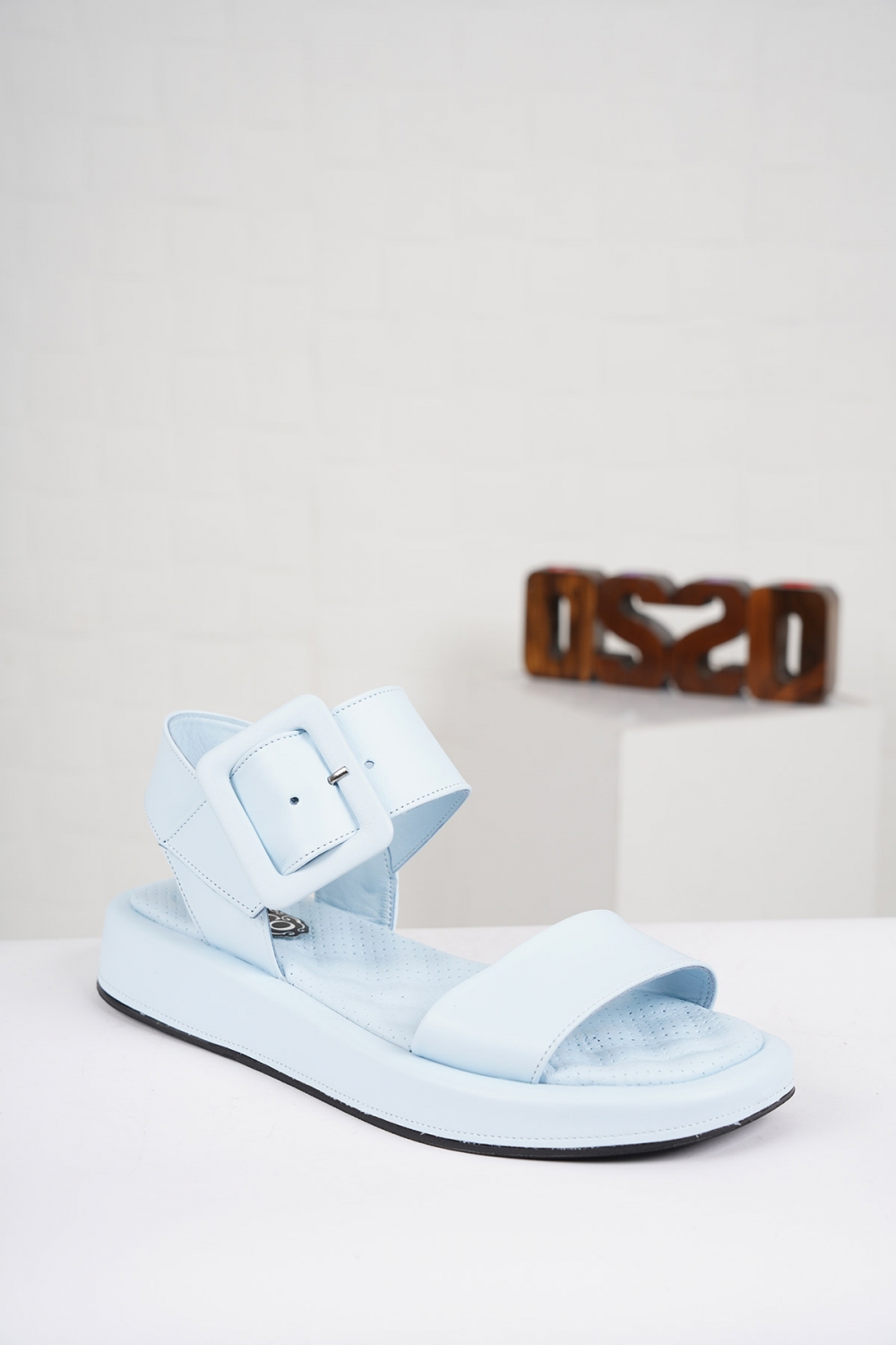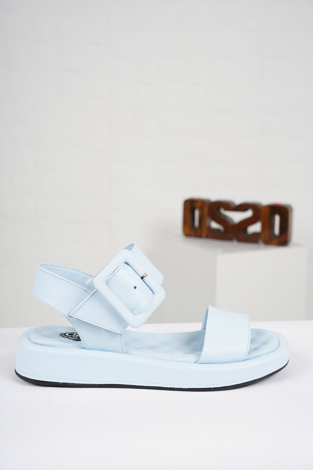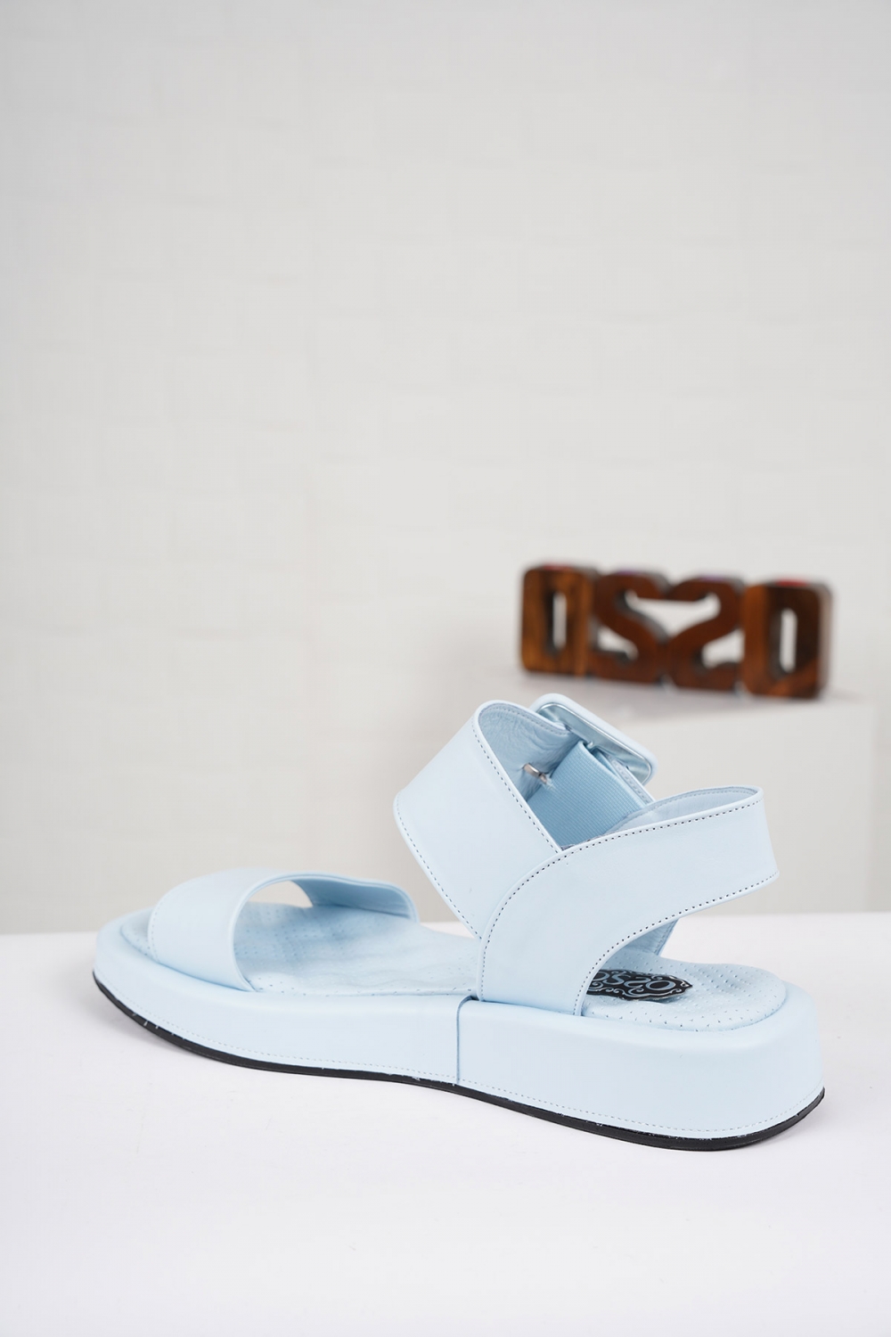 Hakiki Deri Bebe Mavi Kadın Dolgu Topuk Sandalet 221229506