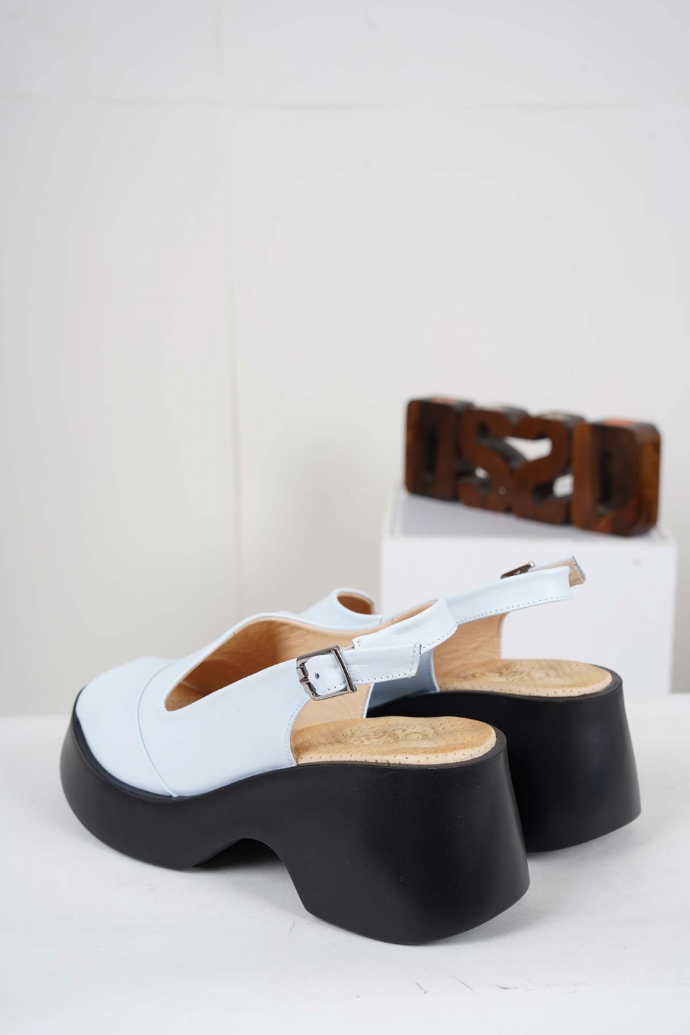 Hakiki Deri Bebe Mavi Kadın Dolgu Topuk Sandalet 241229505