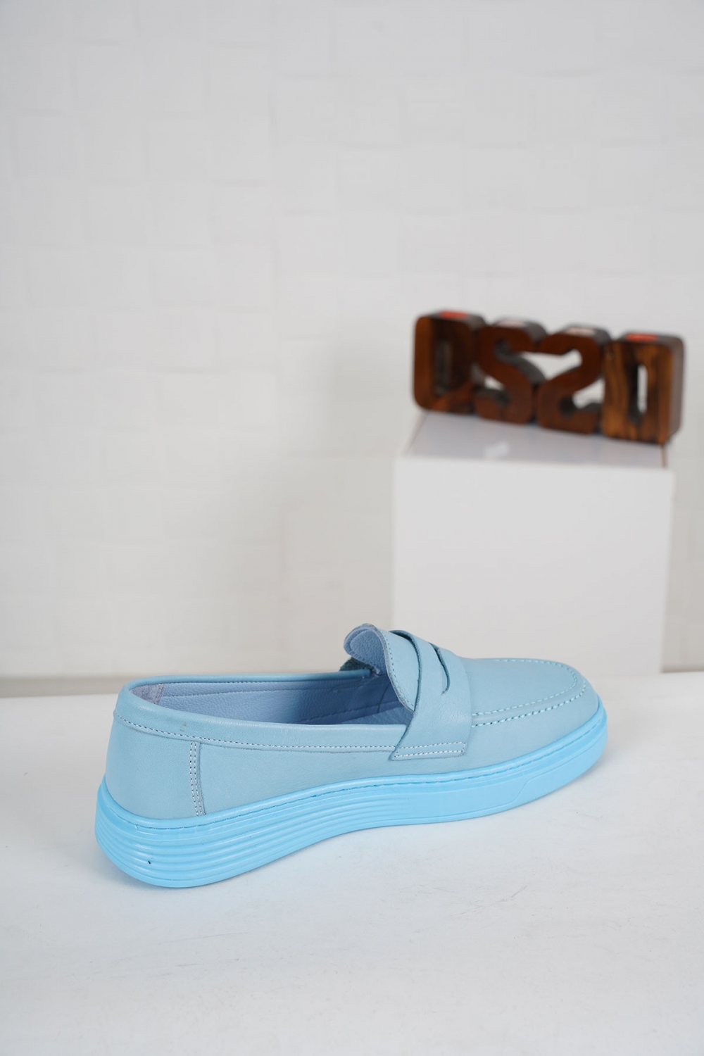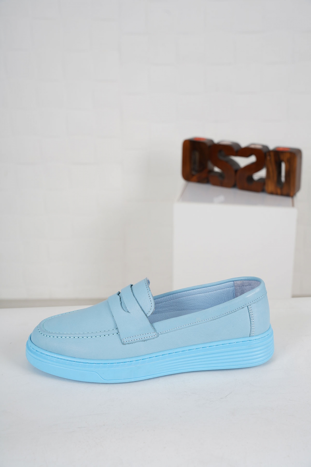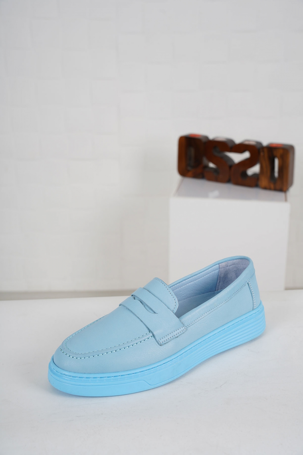Hakiki Deri Bebe Mavi Kadın Makosen Ayakkabı 221108108