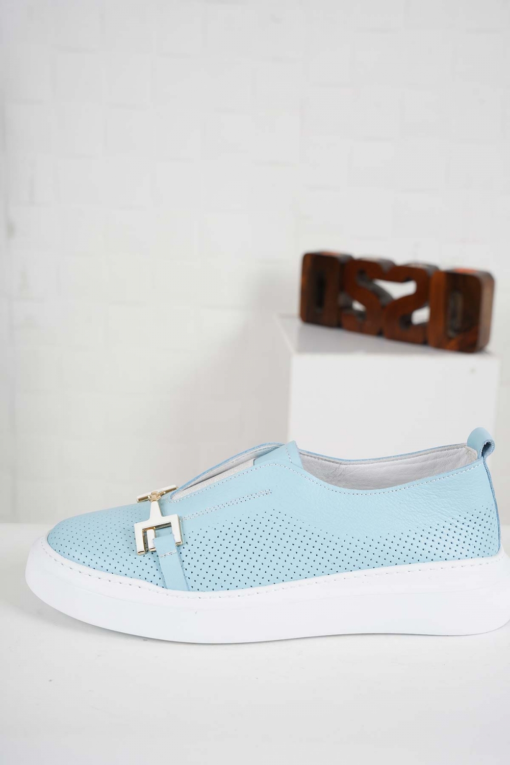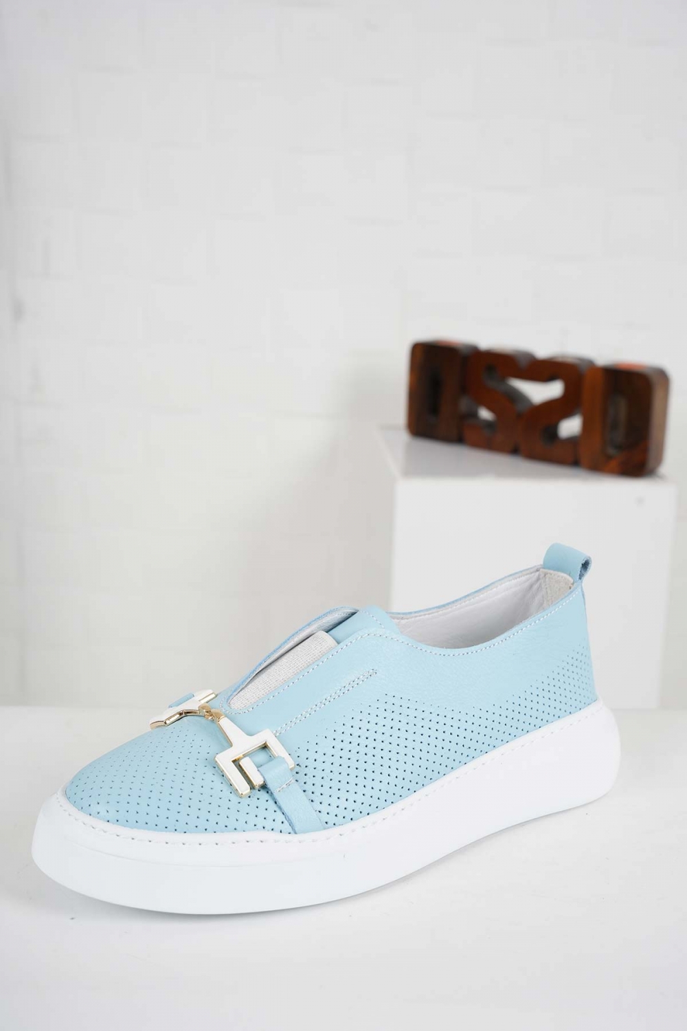 Hakiki Deri Bebe Mavi Kadın Sneaker Ayakkabı 241218105