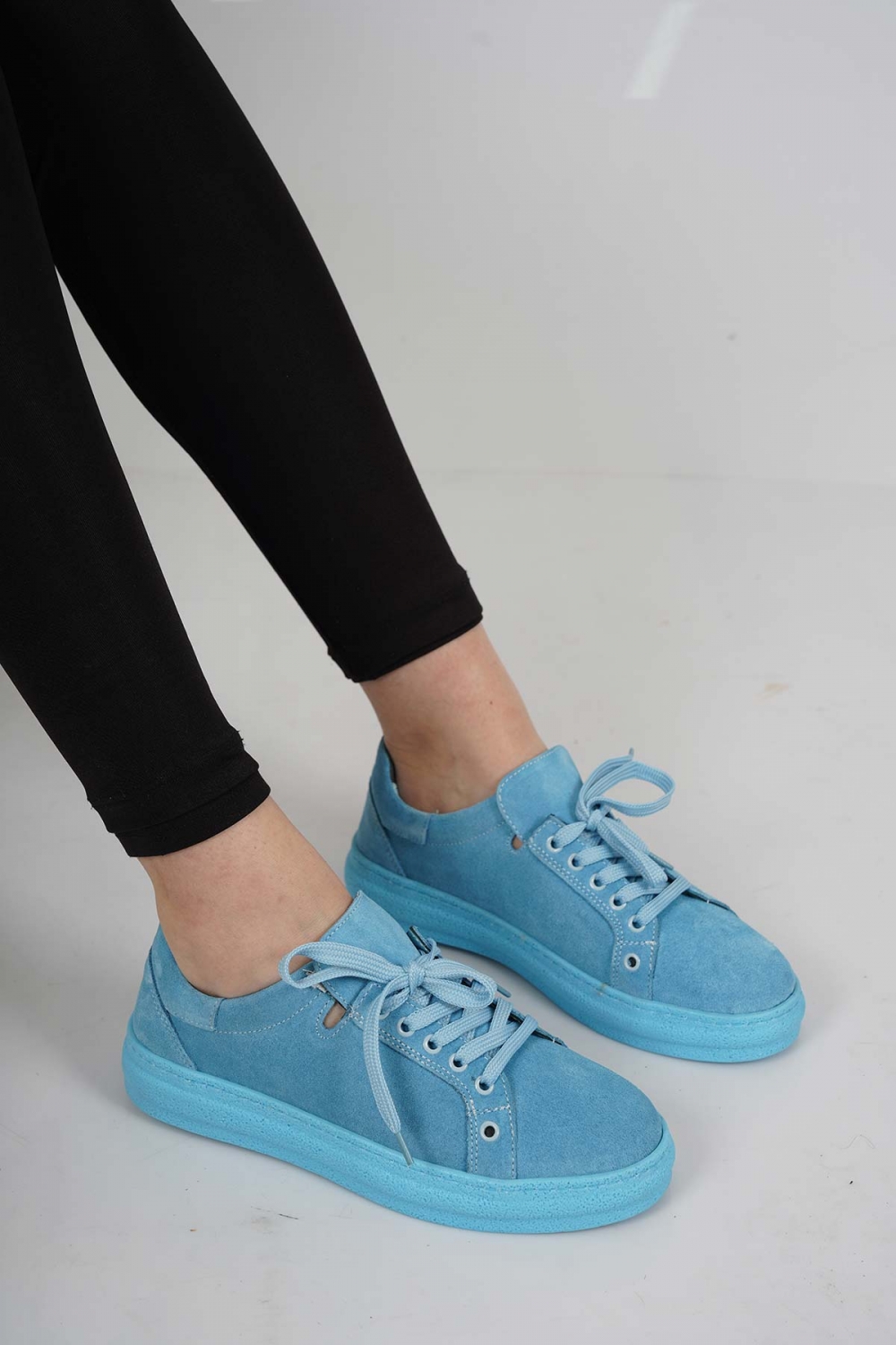 Hakiki Deri Bebe Mavi Süet Kadın Casual Ayakkabı 231108105
