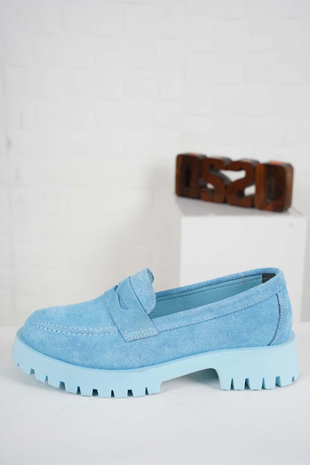 Hakiki Deri Bebe Mavi Süet Kadın Casual Ayakkabı 231108119