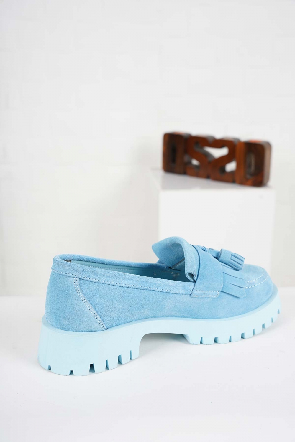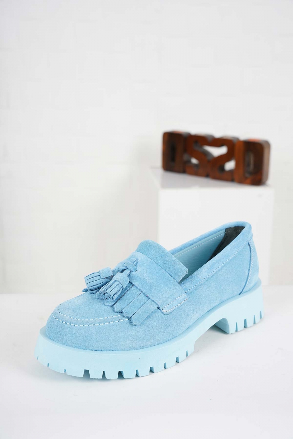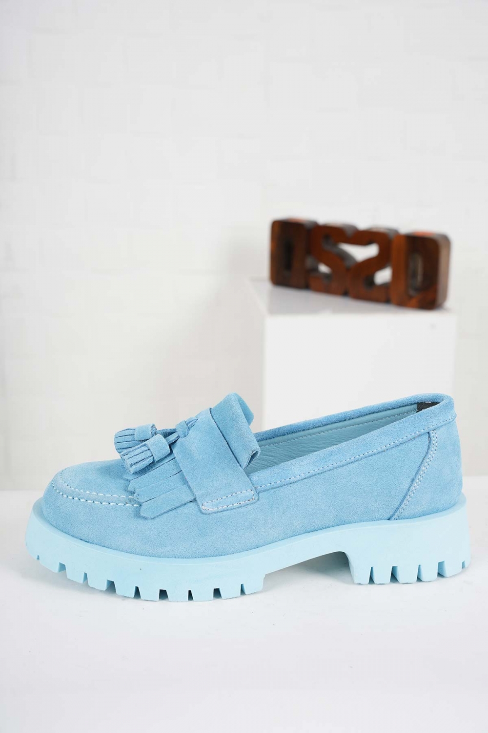 Hakiki Deri Bebe Mavi Süet Kadın Casual Ayakkabı 241108107