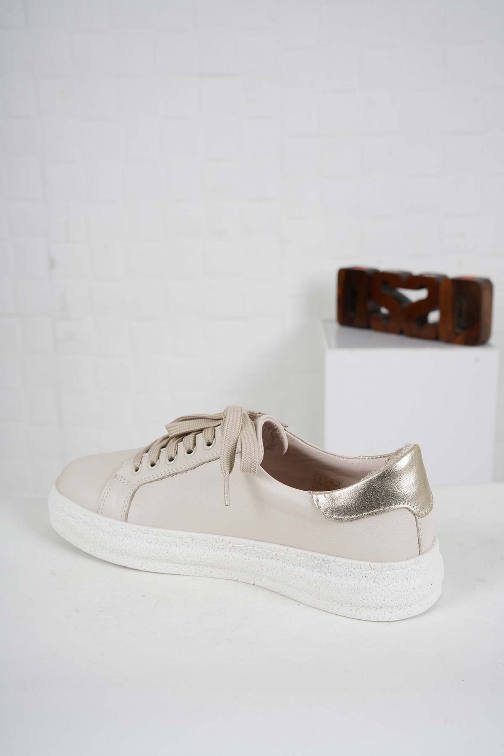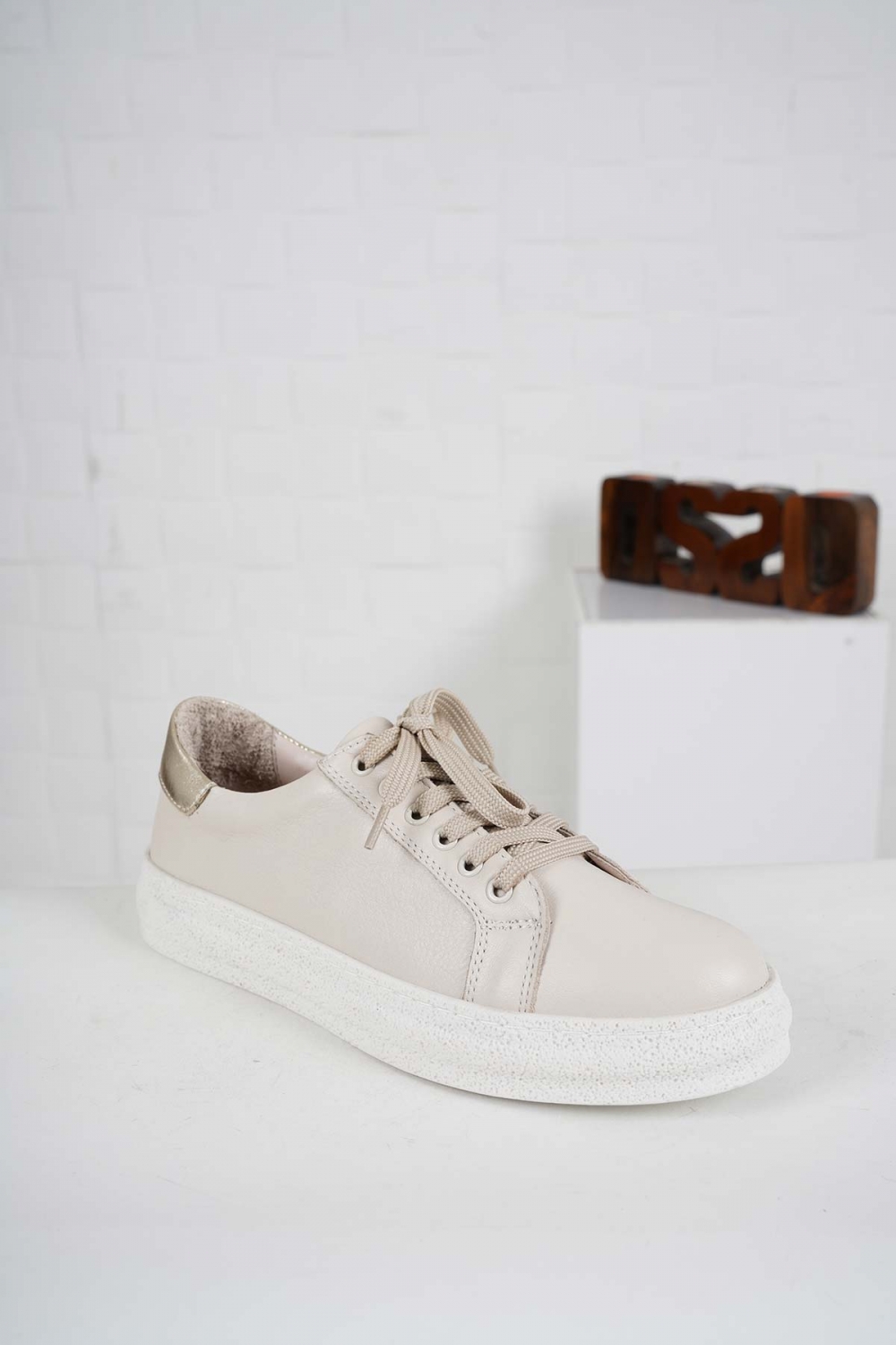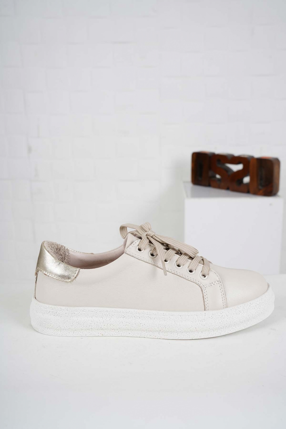 Hakiki Deri Bej-Altın Kadın Casual Ayakkabı 241108109