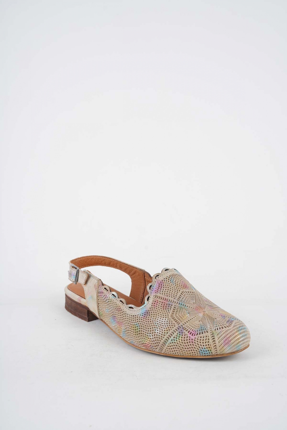 Hakiki Deri Bej Baskılı Kadın Burun Kapalı Sandalet 251214505