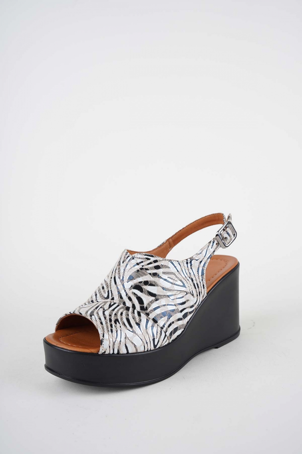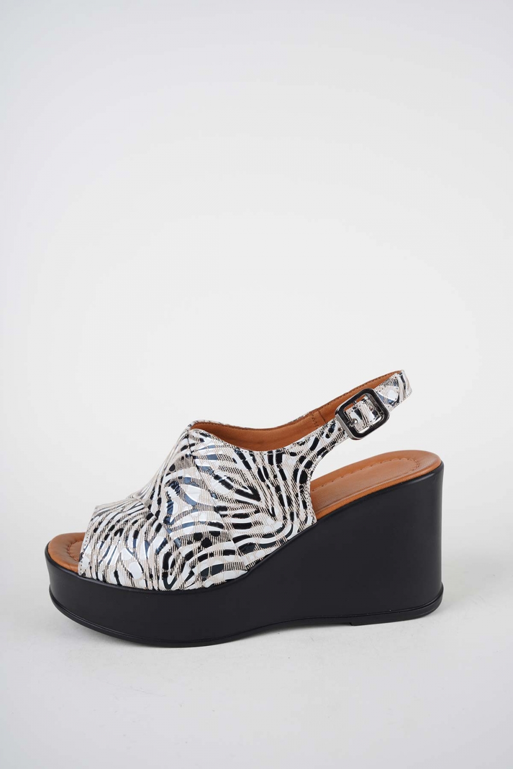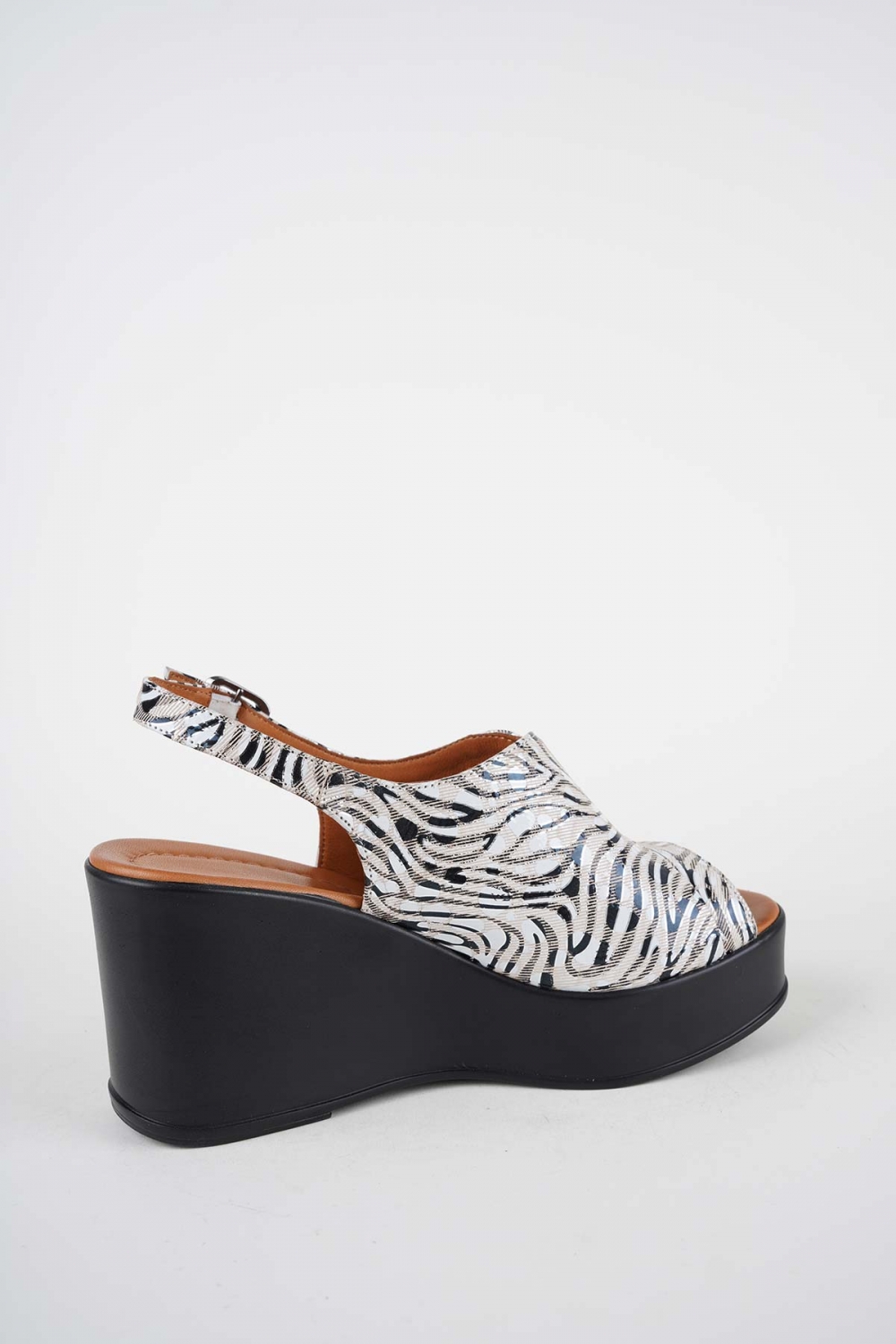 Hakiki Deri Bej Desen Kadın Dolgu Topuklu Sandalet 261229511