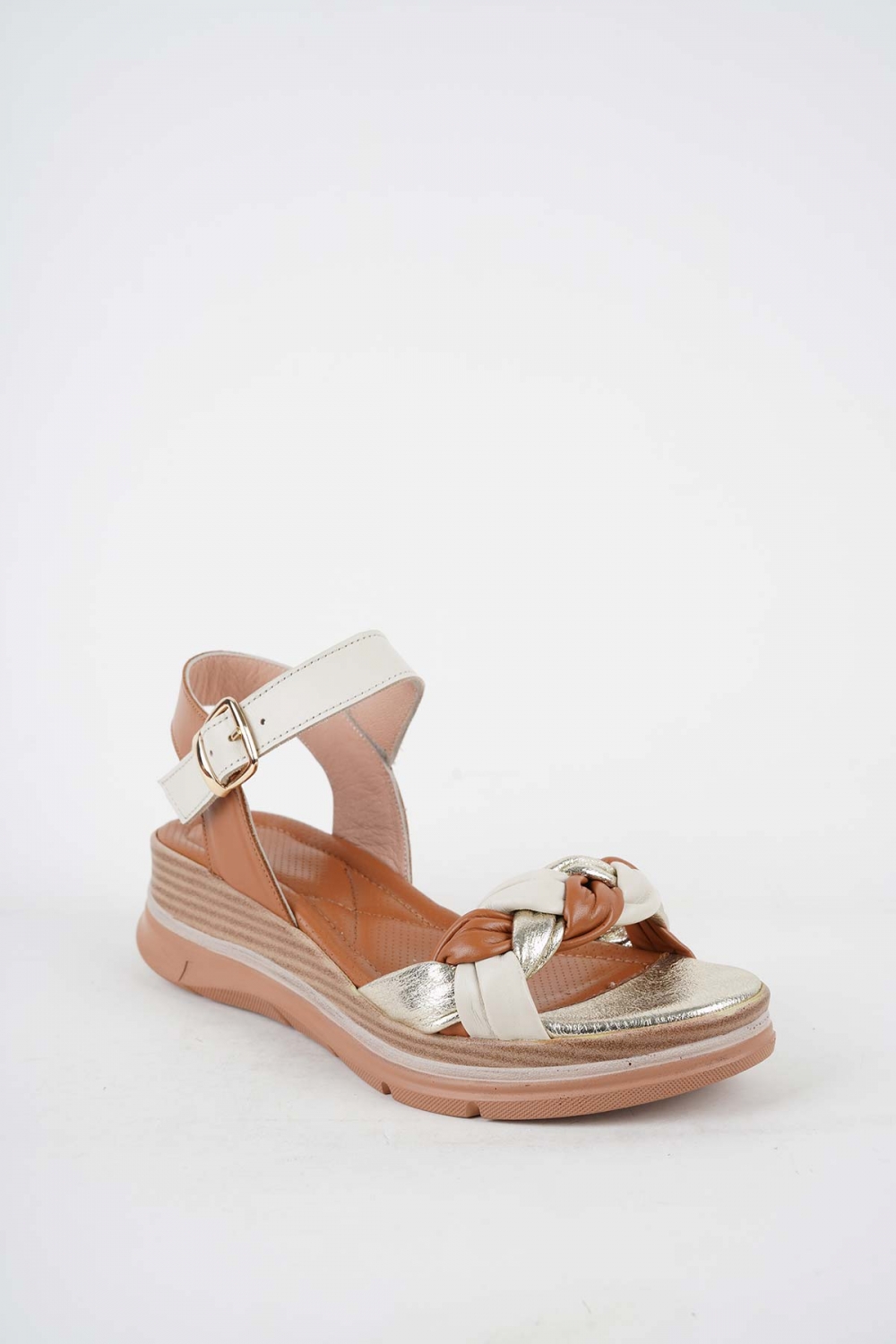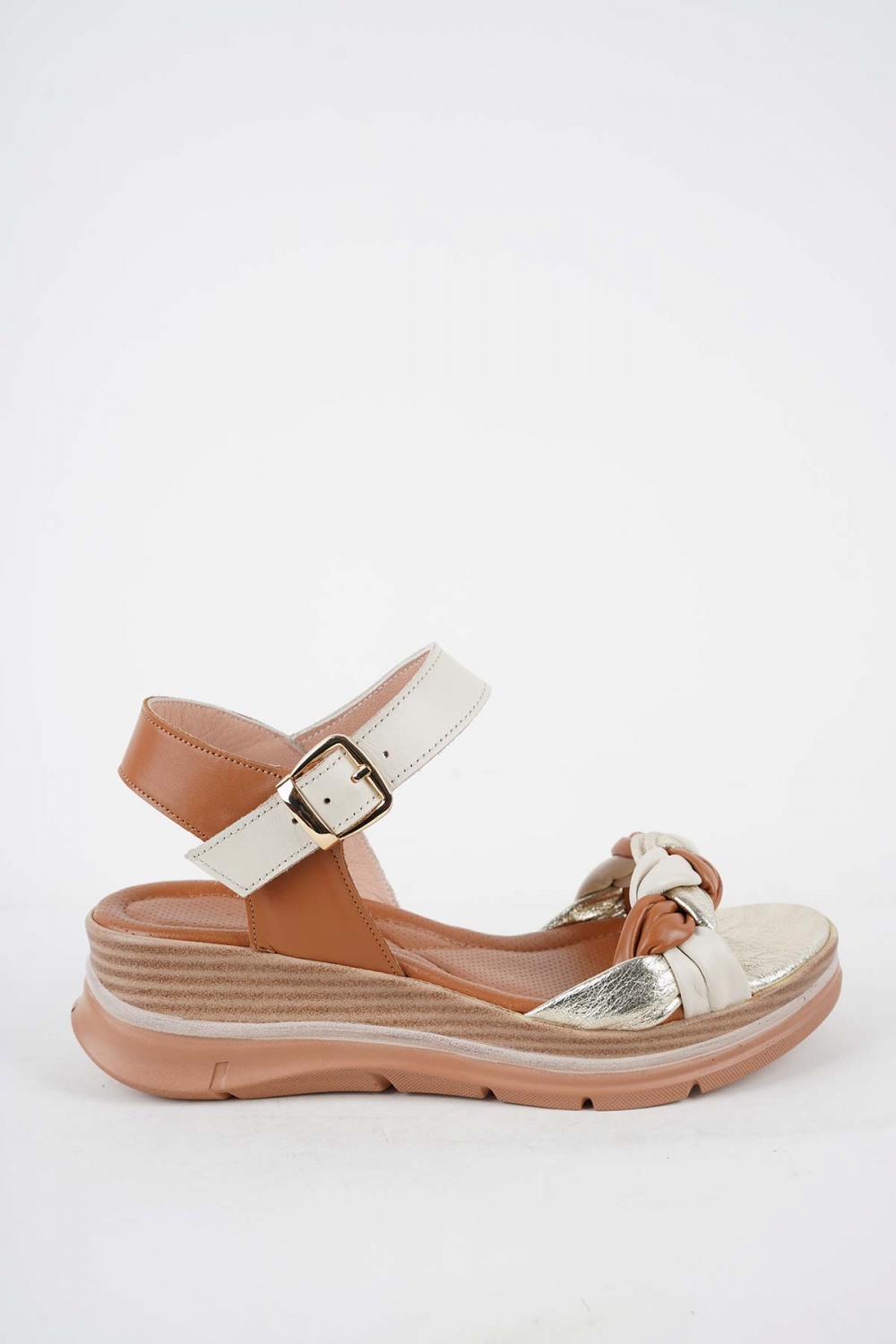 Hakiki Deri Bej-Dore-Taba Kadın Dolgu Topuk Sandalet 251127505