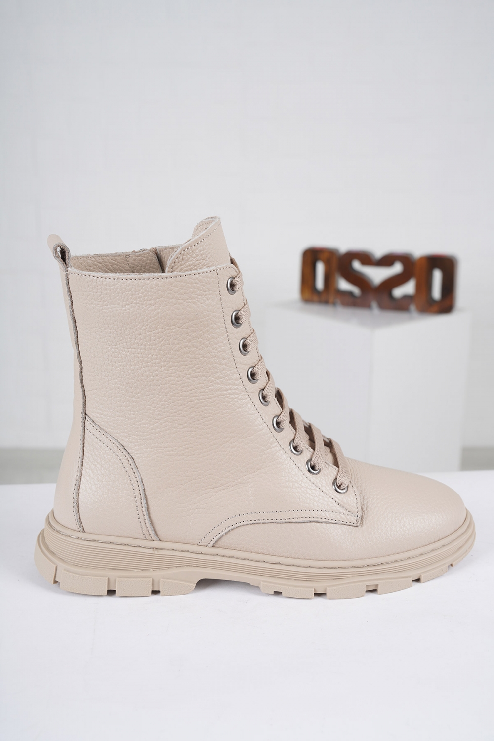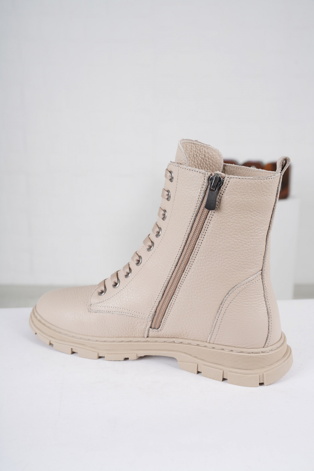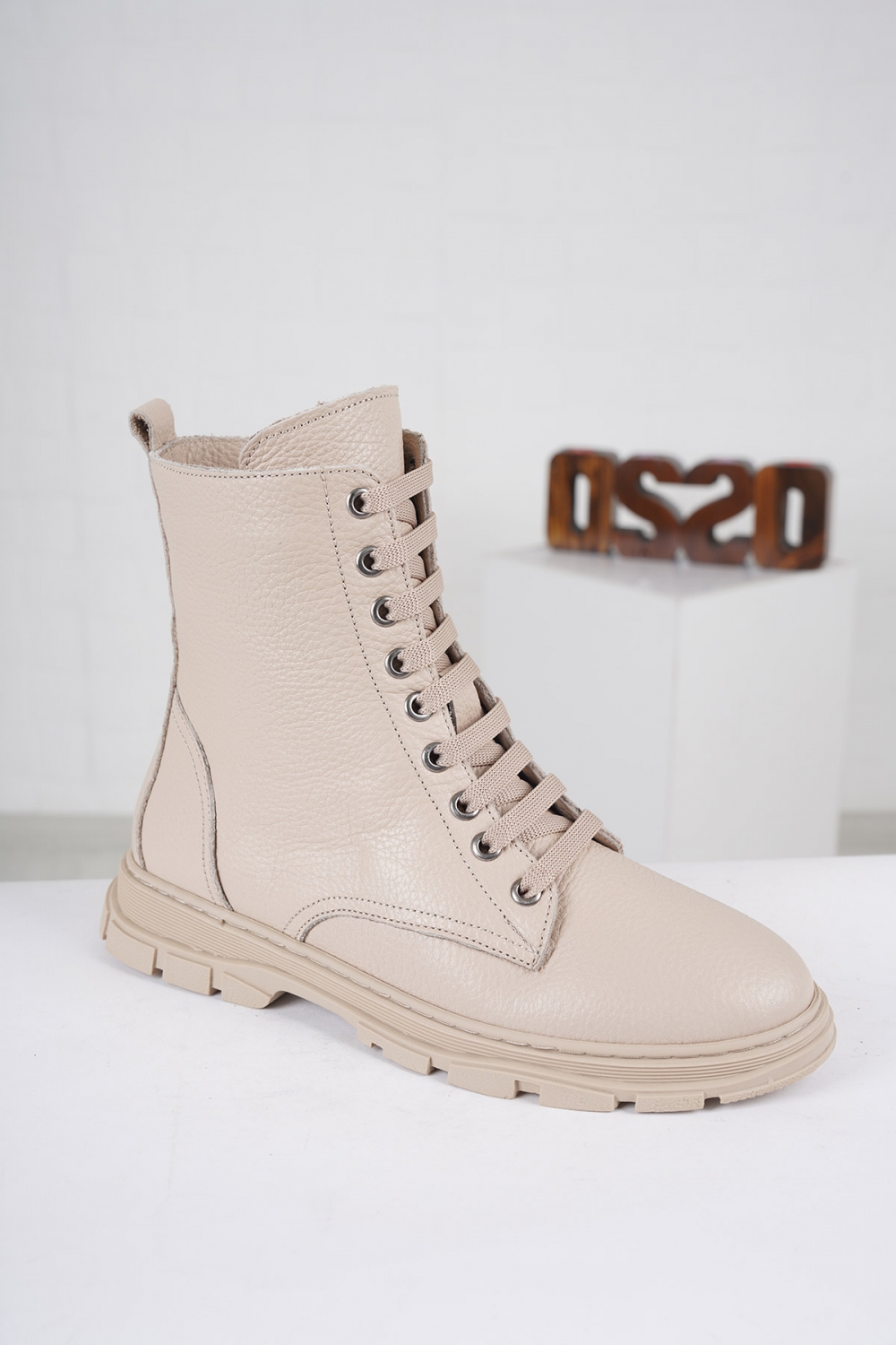 Hakiki Deri Bej Floter Kadın Düz Bot 212135203