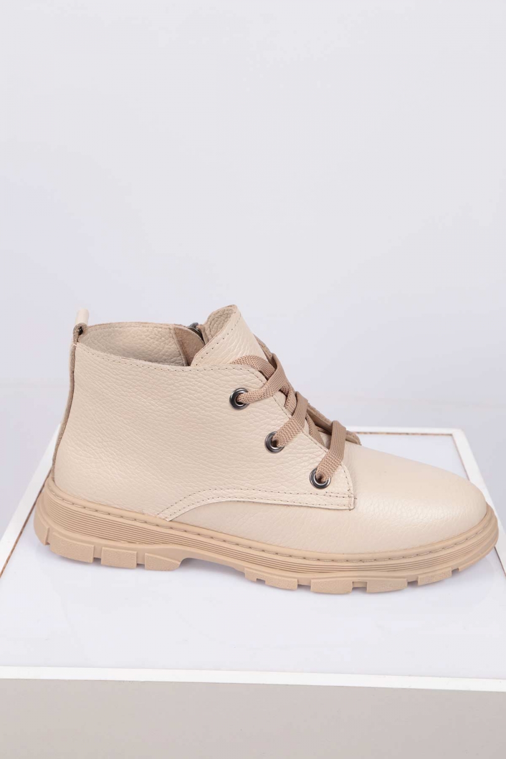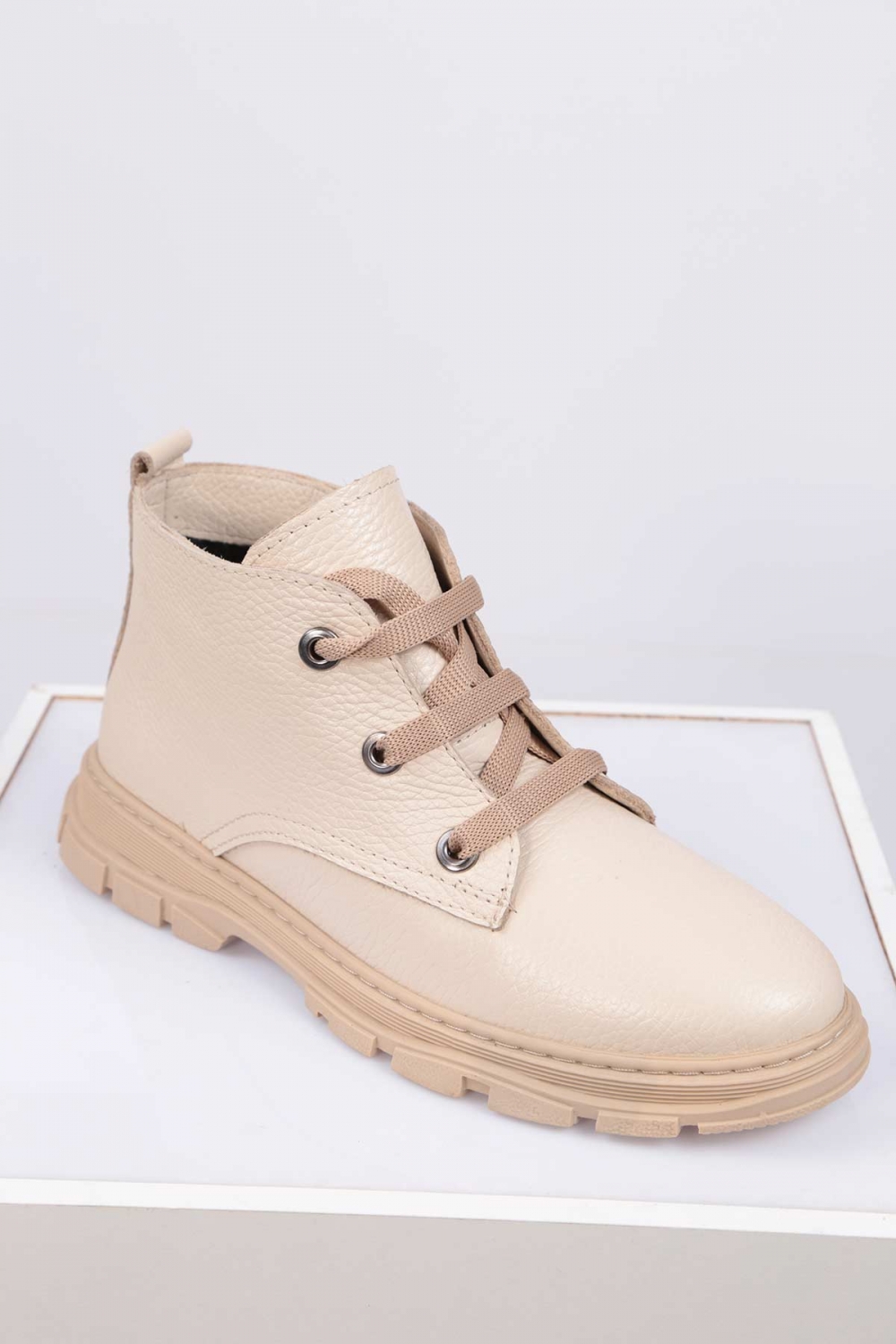 Hakiki Deri Bej Floter Kadın Kısa Bot 212135204