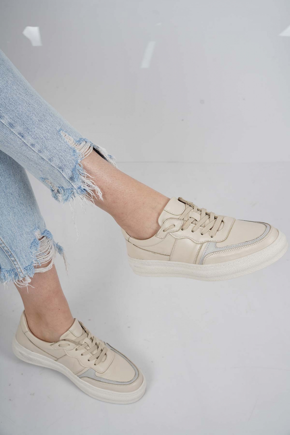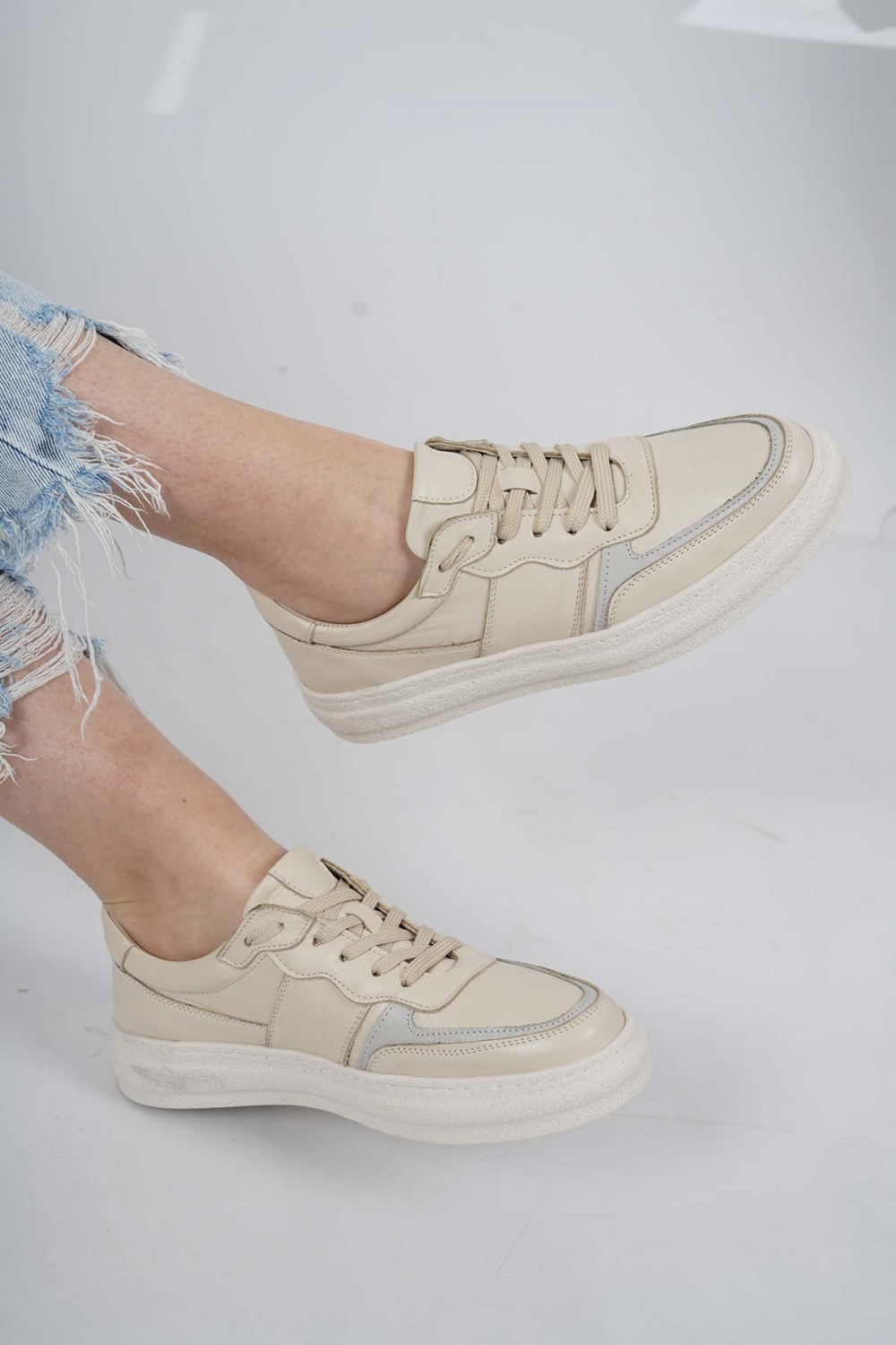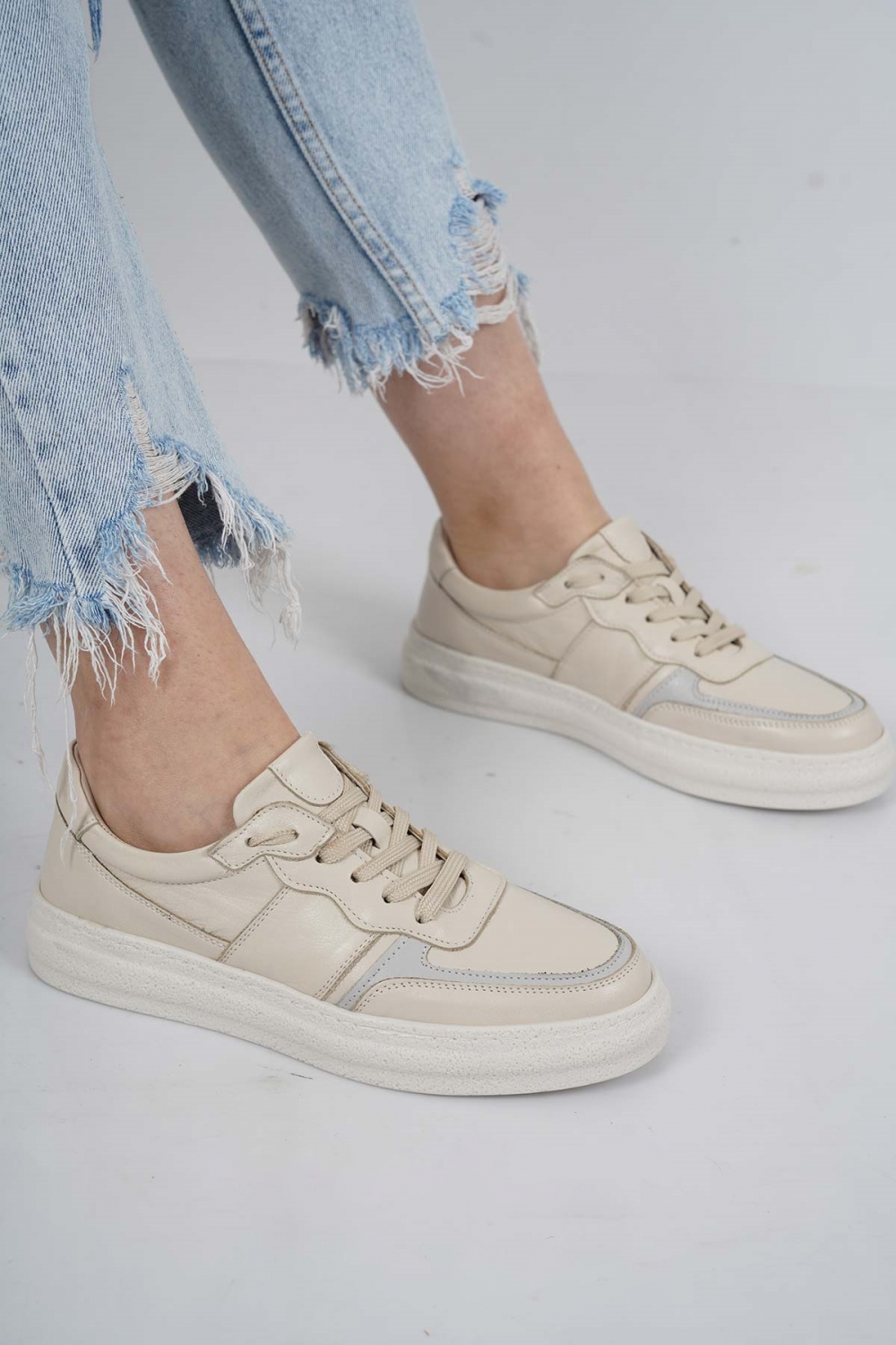 Hakiki Deri Bej-Gri Kadın Casual Ayakkabı 231108103