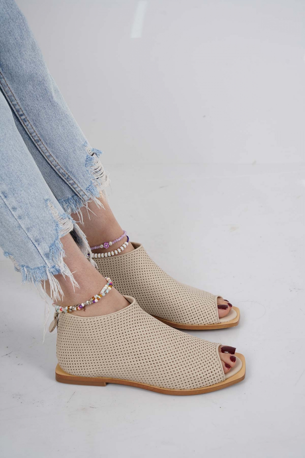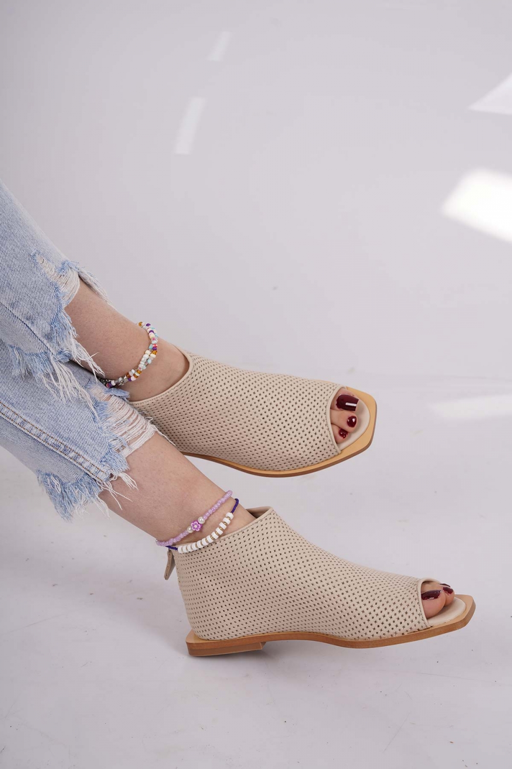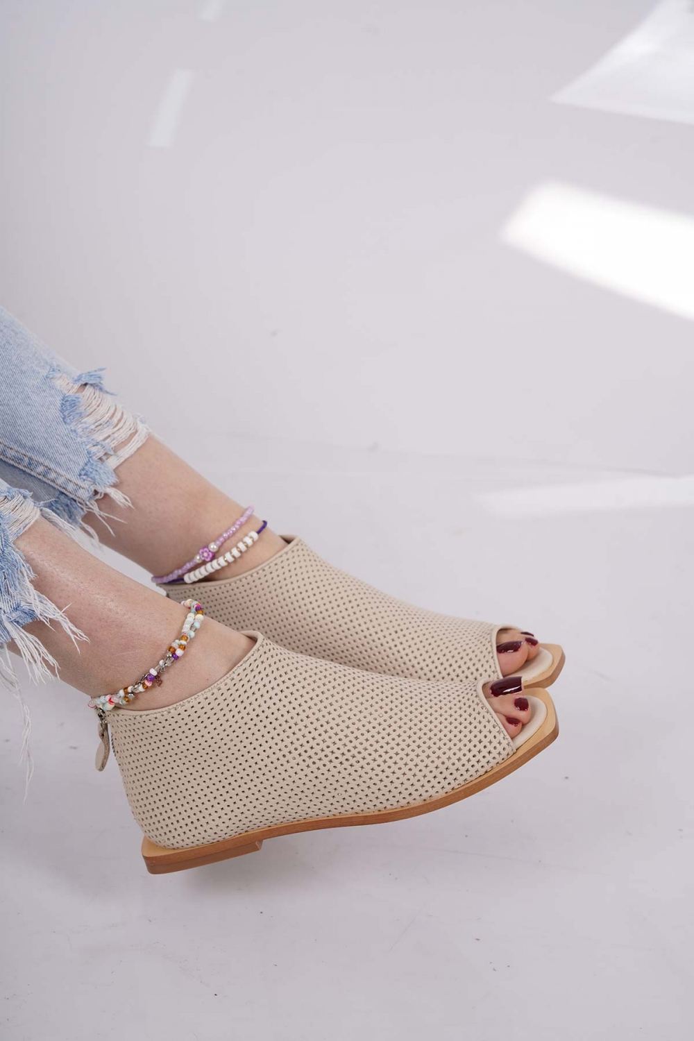 Hakiki Deri Bej Kadın Burnu Açık Bot 221110201