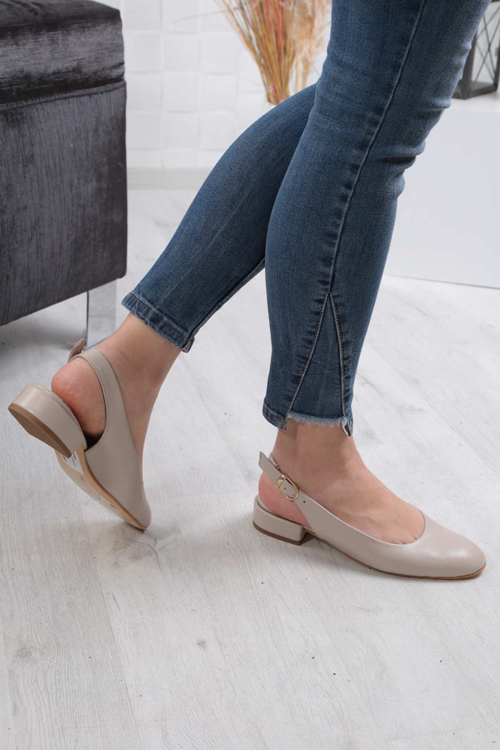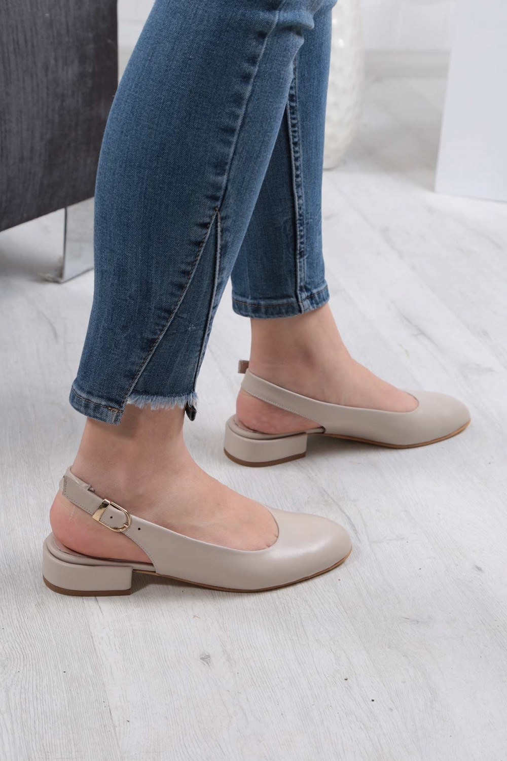 Hakiki Deri Bej Kadın Burun Kapalı Sandalet 211127531