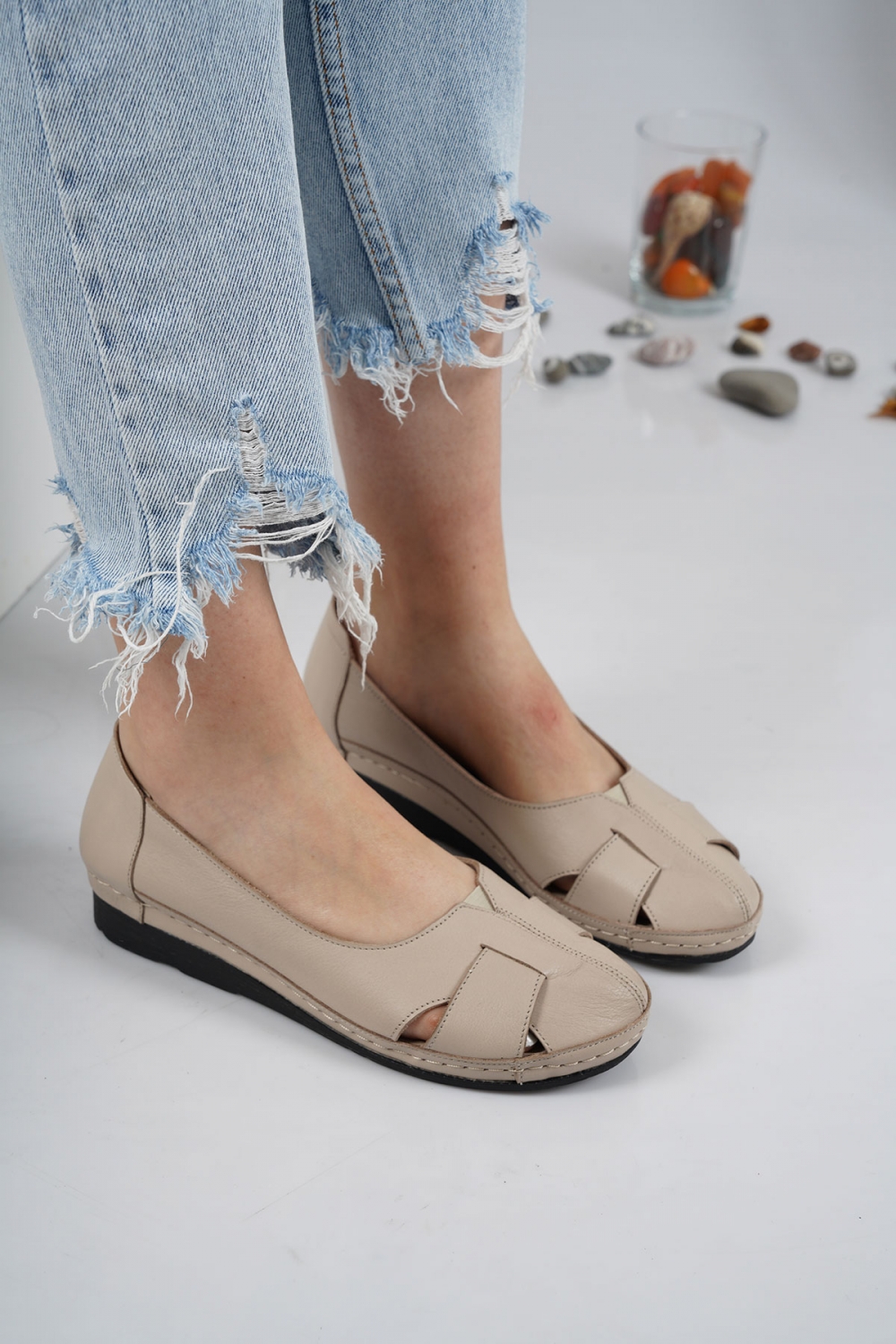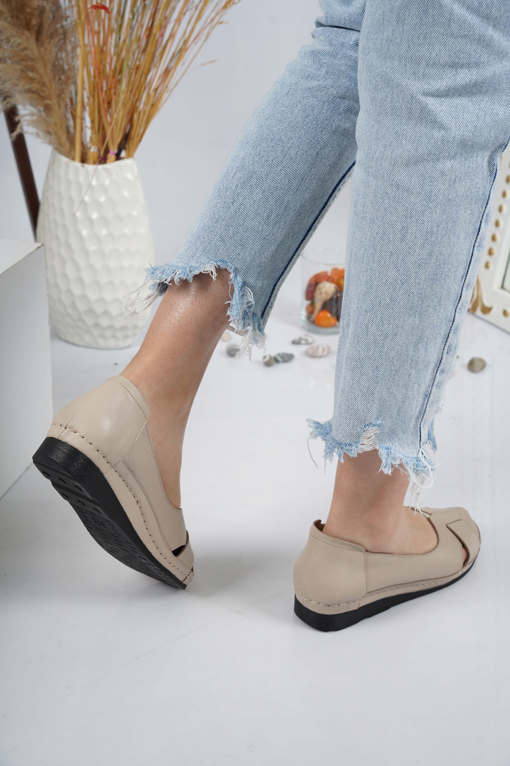 Hakiki Deri Bej Kadın Comfort Ayakkabı 221177101