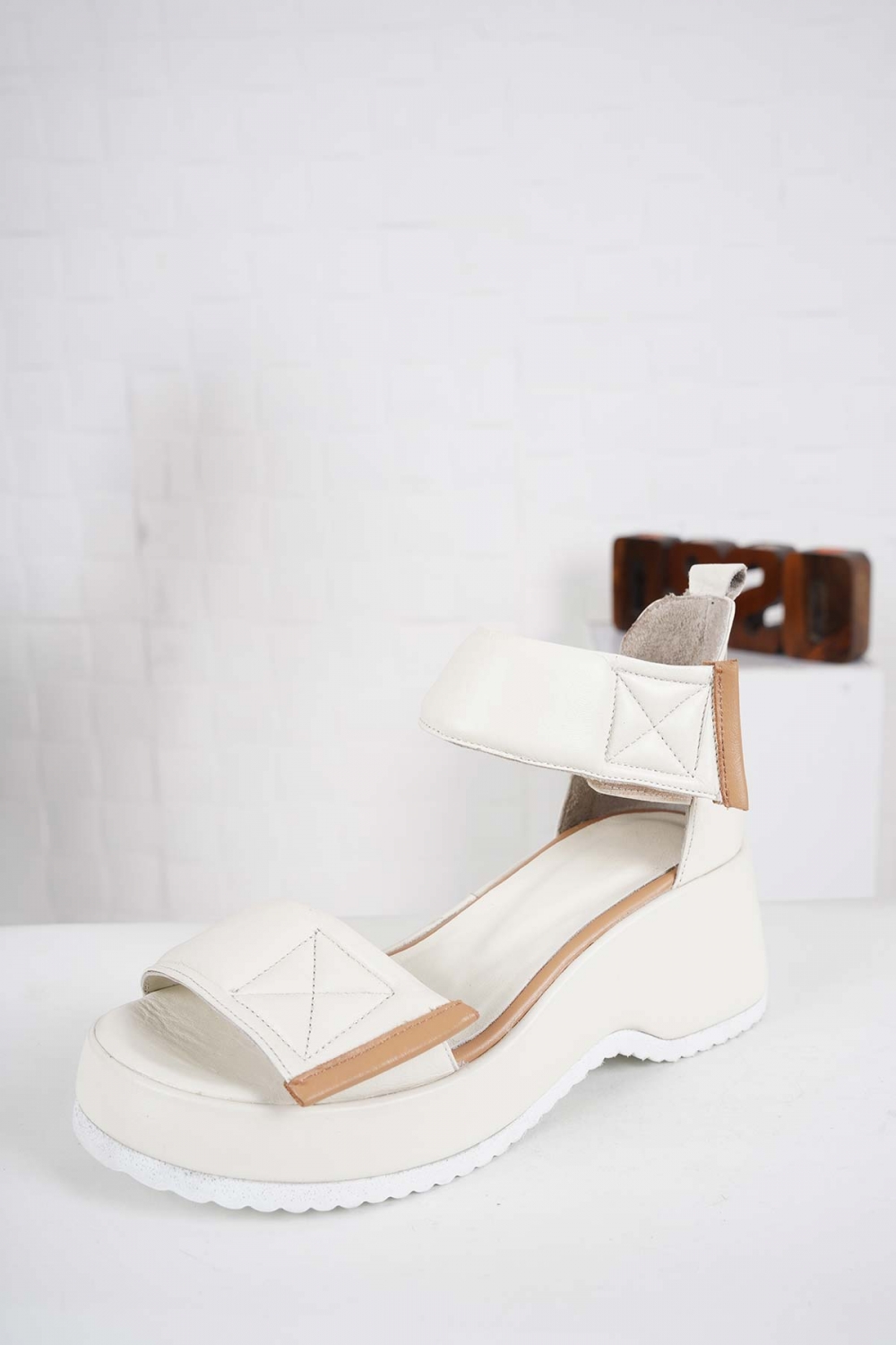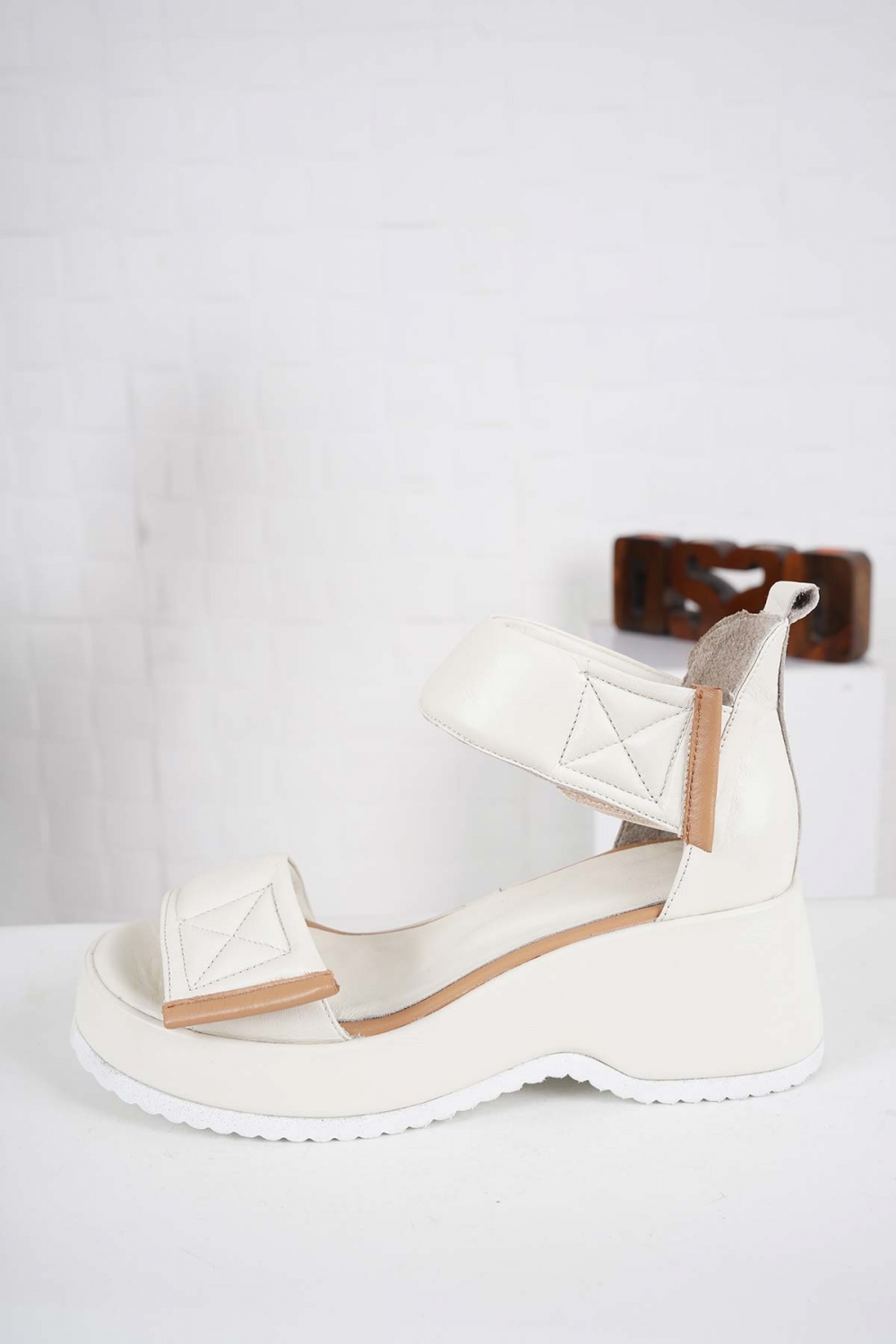 Hakiki Deri Bej Kadın Dolgu Topuk Sandalet 241135503
