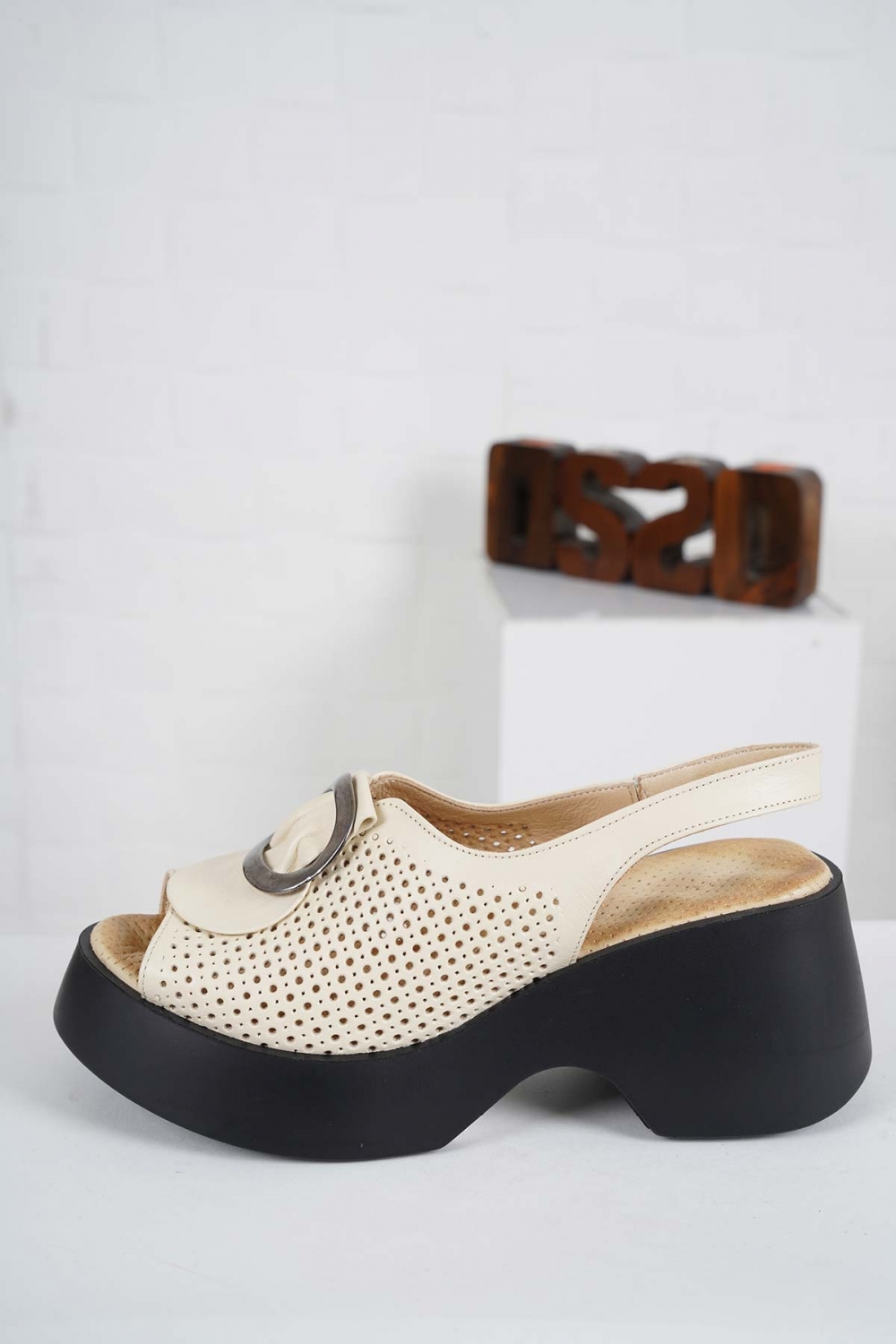 Hakiki Deri Bej Kadın Dolgu Topuk Sandalet 241229504
