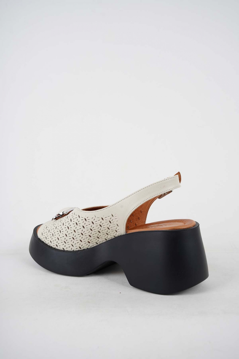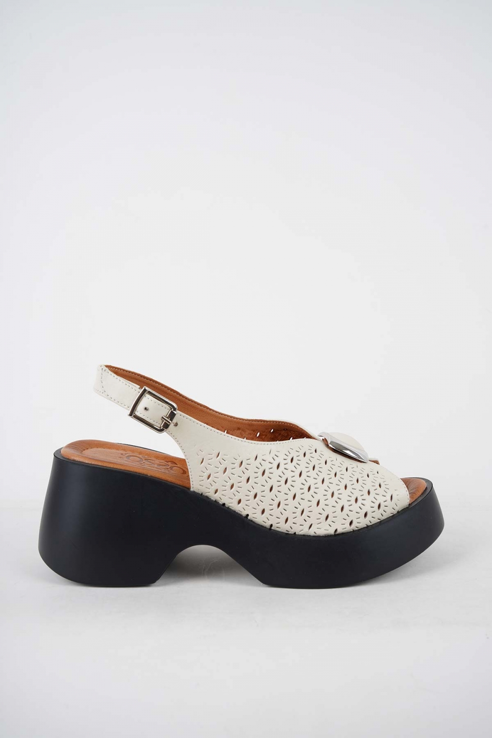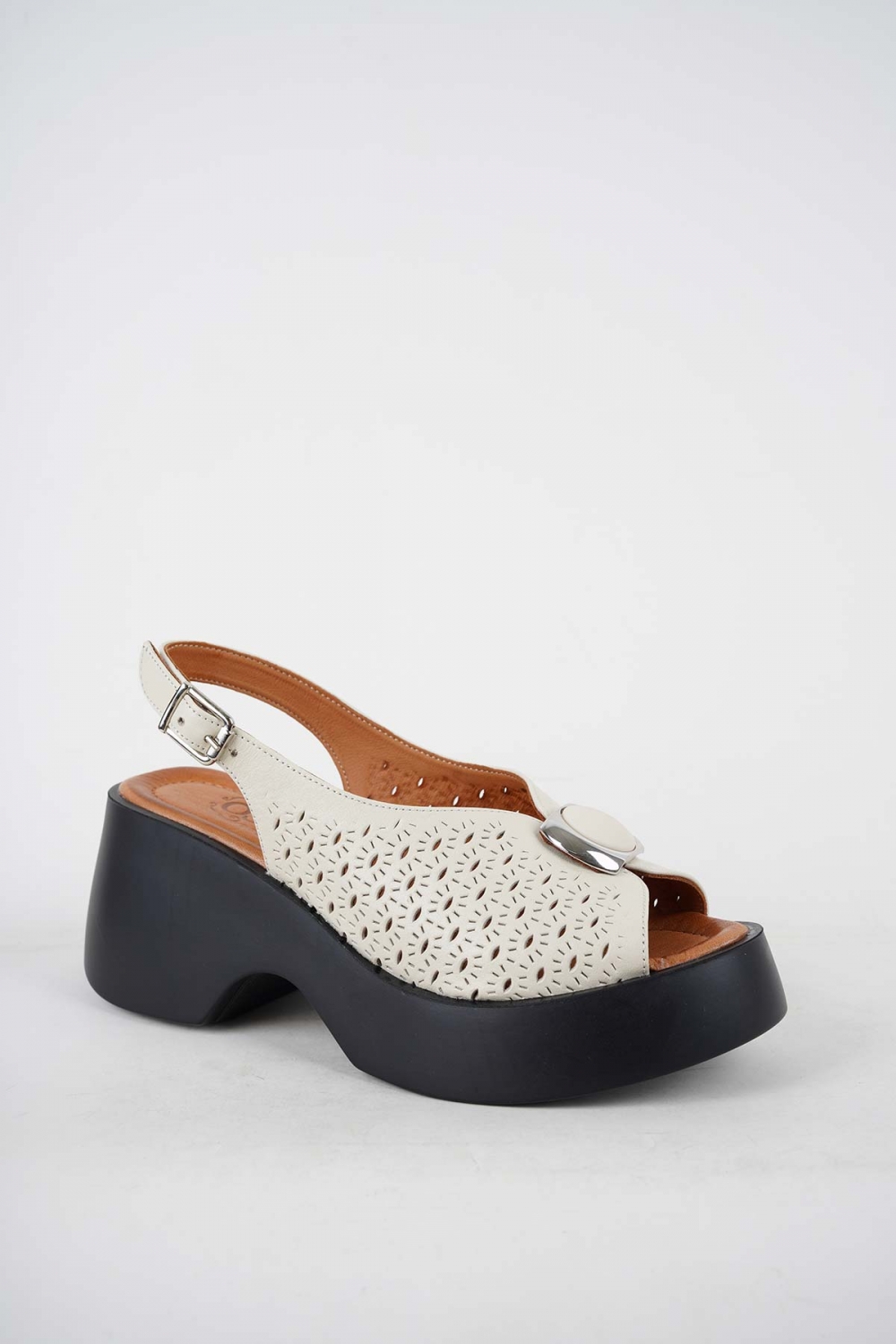 Hakiki Deri Bej Kadın Dolgu Topuk Sandalet 241229521
