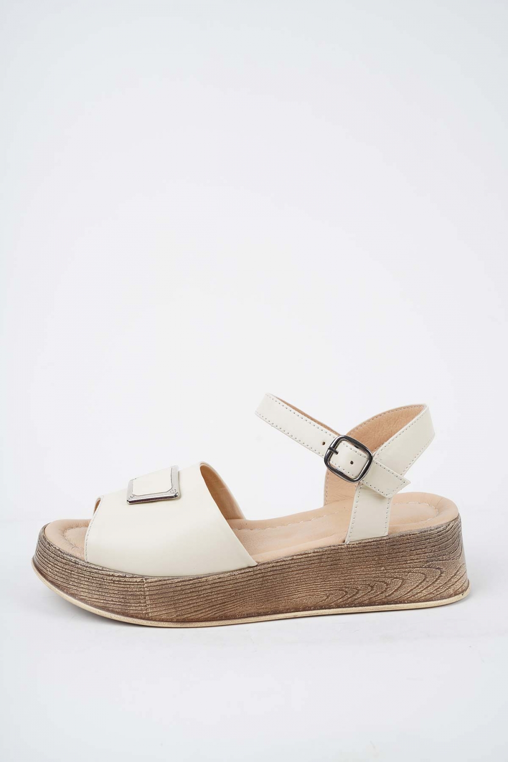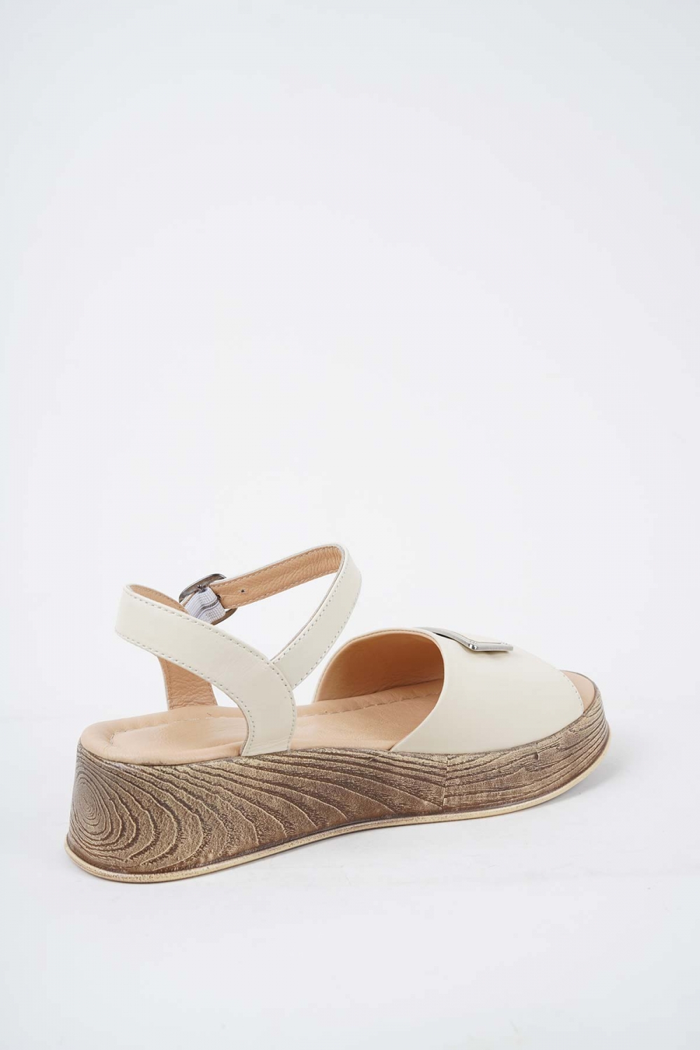 Hakiki Deri Bej Kadın Dolgu Topuk Sandalet 251189501