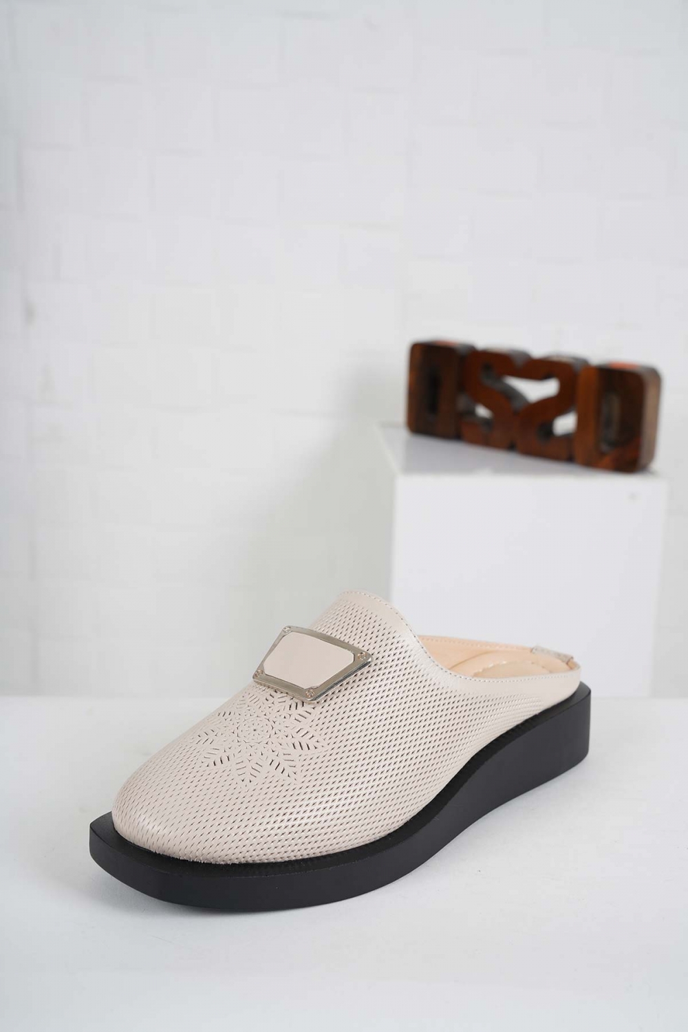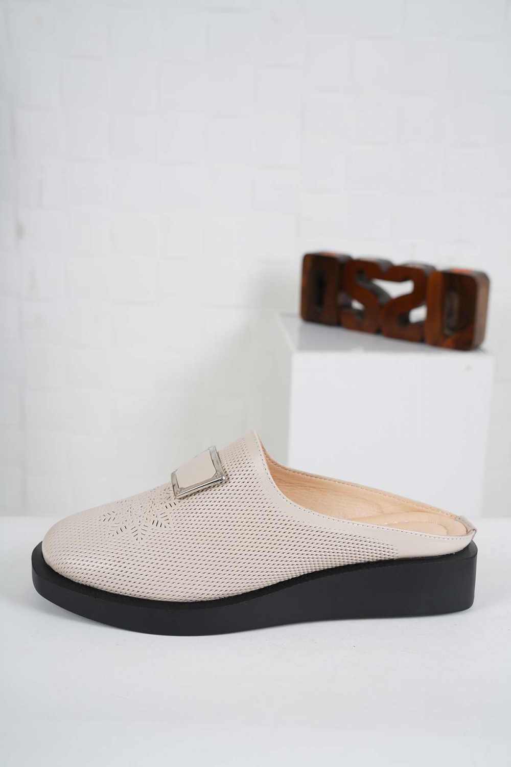 Hakiki Deri Bej Kadın Dolgu Topuklu Sabo 241189705
