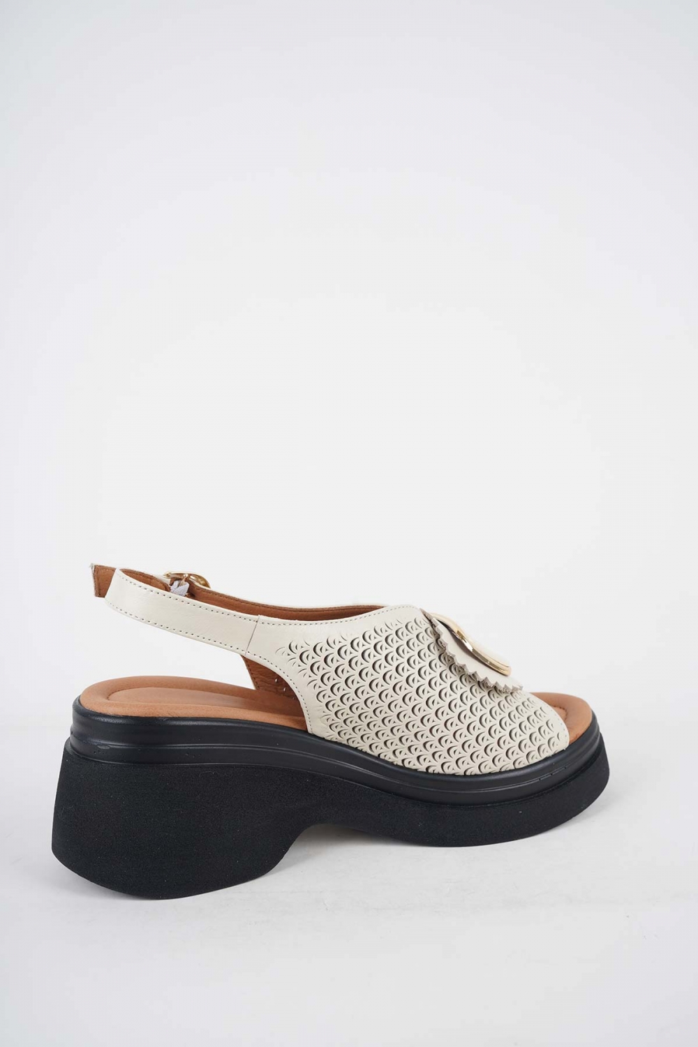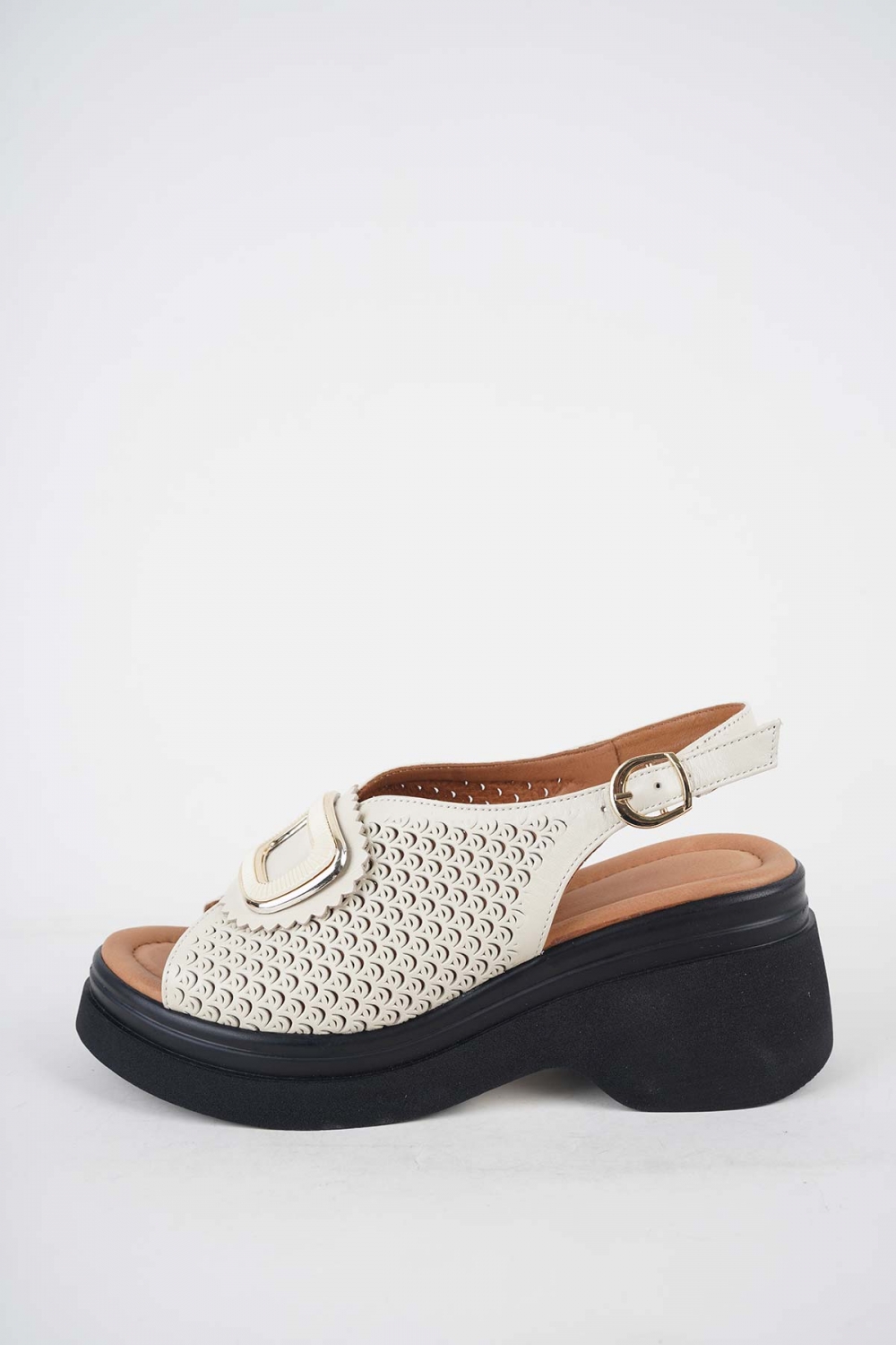 Hakiki Deri Bej Kadın Dolgu Topuklu Sandalet 251186501